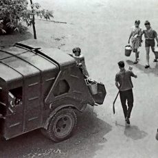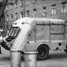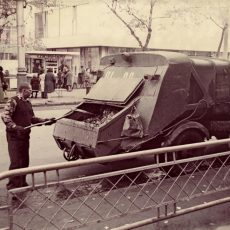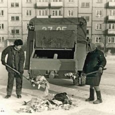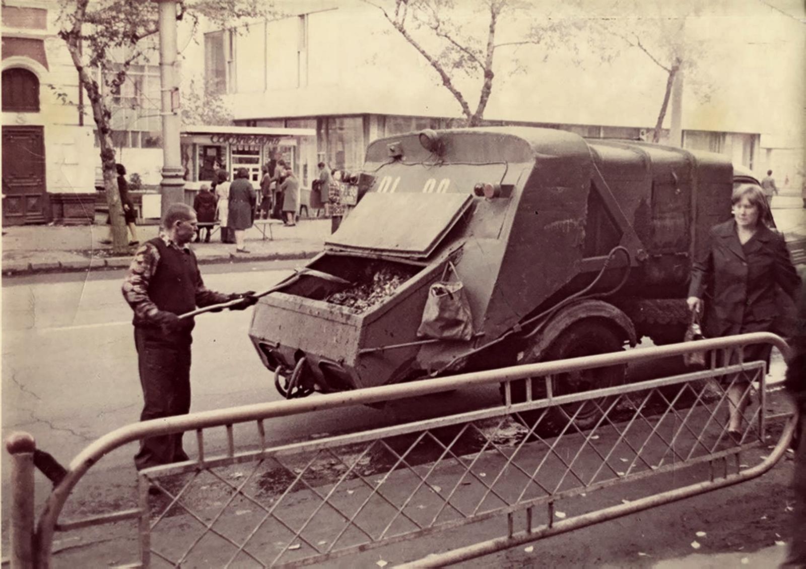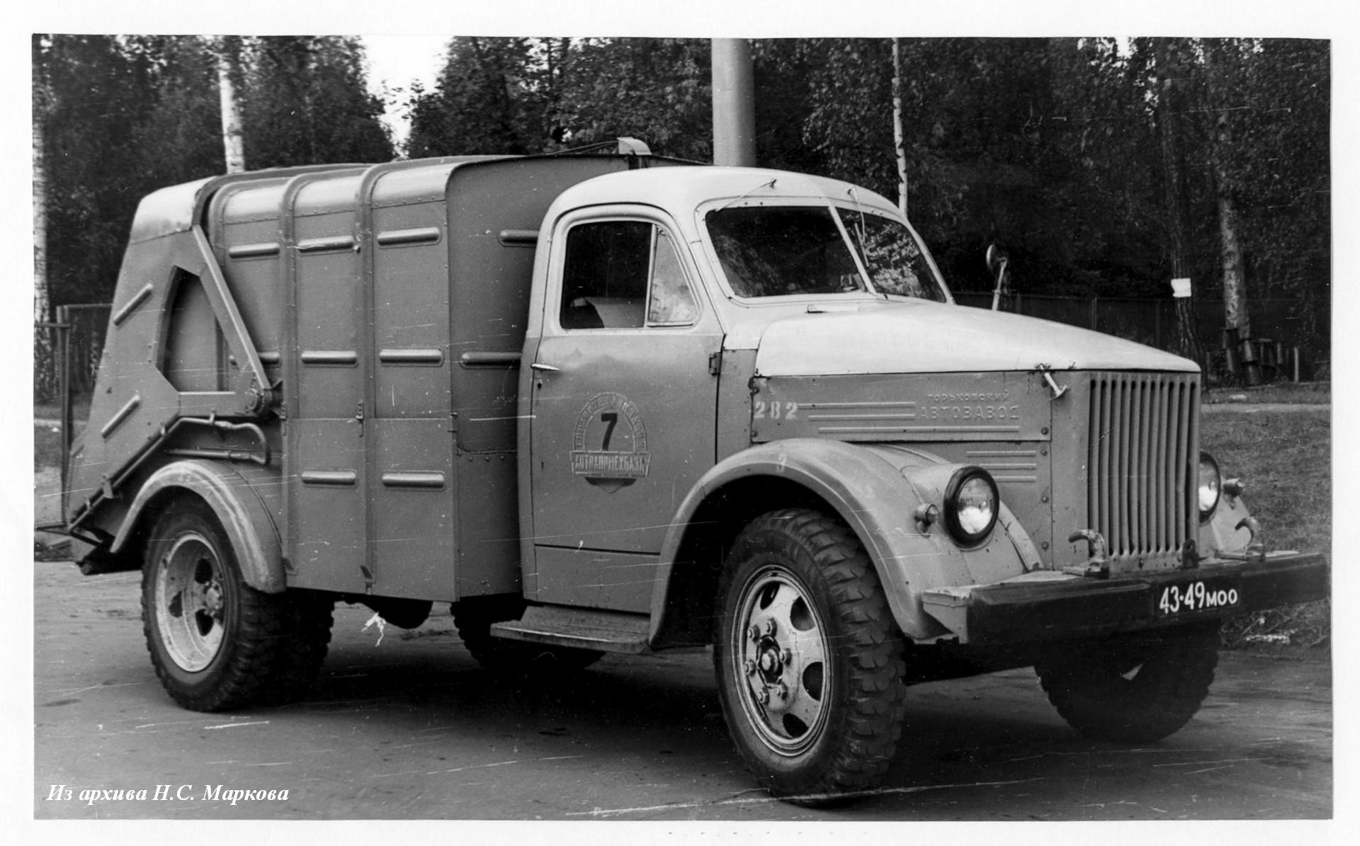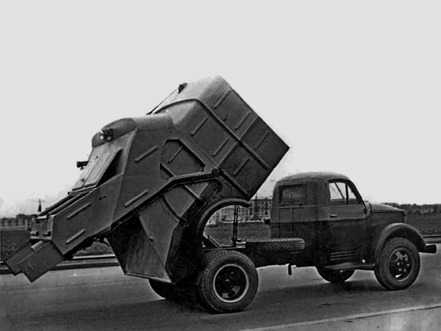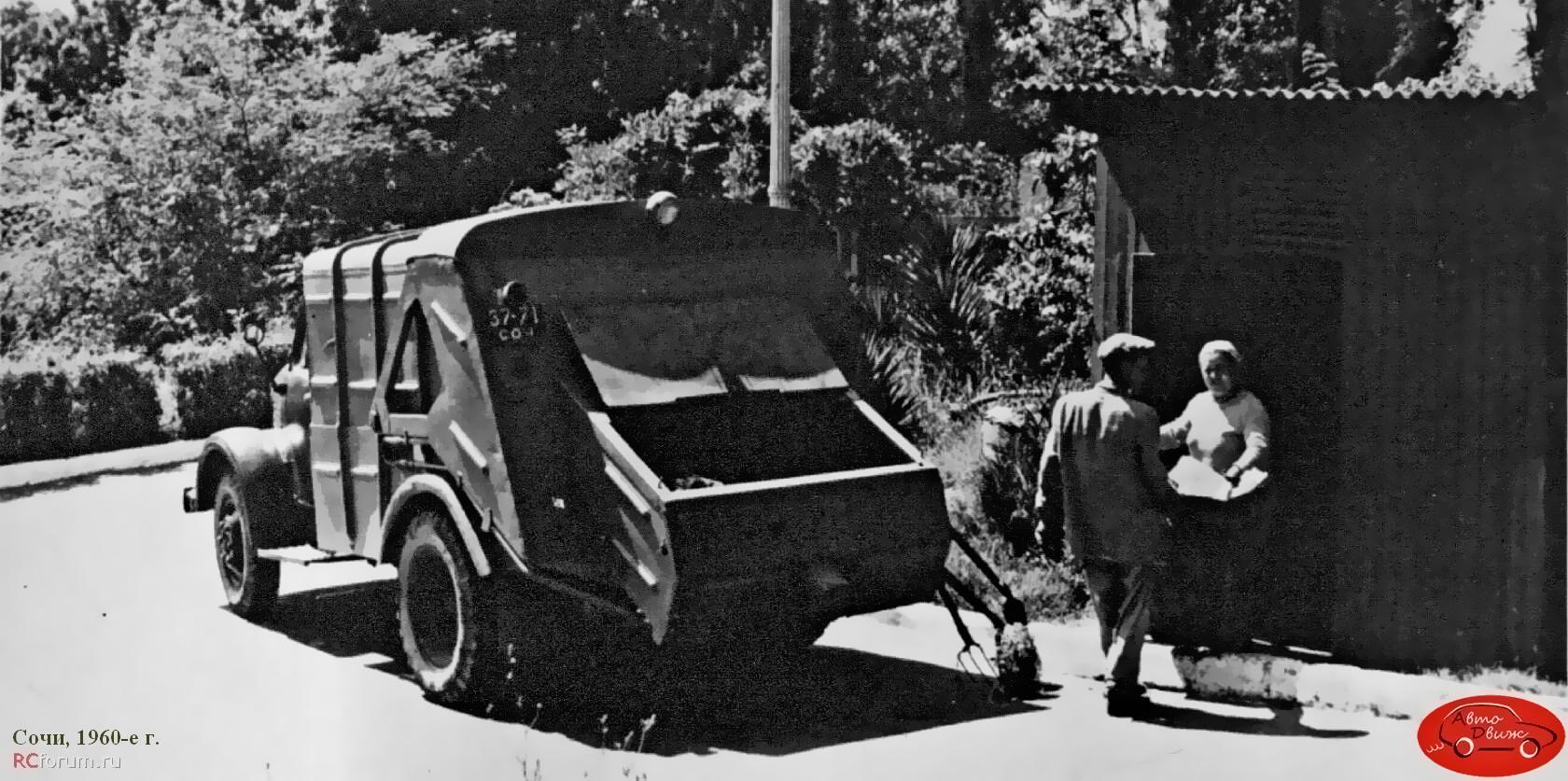Один из самых запомнившихся грузовиков моего ростовского детства, так как «мусорка», как мы его называли, приезжала в определенное дневное время, и только я был дома. Заранее выносил свое, а заодно и соседские, мусорные ведра оцинкованные или б/у эмалированные на улицу, где к этому времени нас собиралось человек 10-15. Такие кучки людей с ведрами виднелись по улице через каждые метров 150-200. Подъезжала машина, и мы опрокидывали ведра в этакий карман сзади ее кузова, расположенный достаточно низко для моих 8-10 лет. Водитель мусоровоза по мере наполнения кармана включал скребок, который, двигаясь наклонно вверх, отправлял мусор в кузов, где он заодно и уплотнялся. Не считая ожидания машины, выброс мусора занимал минут 10-15.