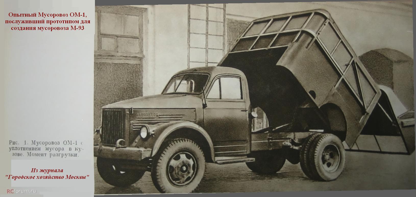 Мусоровозы модели 93М сперва выпускались самим предприятием-разработчиком – п/я 4111 г. Москва (1955-61 г.). В 1958 предприятие стало специализироваться на разработке, испытаниях и выпуске опытных образцов техники для коммунального хозяйства г. Москвы на шасси грузовых автомобилей. Вскоре на предприятии был освоен выпуск мусоровоза модели 93М на шасси ГАЗ-51. Спецавтомобиль стал объектом гордости заводчан, поскольку при проектировании его спецнадстройки были решены сложнейшие технические задачи по установке гидравлической системы. Мусоровозы выпускали по 90 штук в месяц на протяжении полутора лет, а заявки на их поставку присылали со всей территории СССР. Затем производство модели 93М передали на Орловский завод автопогрузчиков. Видимо, именно в этот момент конструкция кузова машины подверглась упрощению, лишившись длинной низкой юбки, прикрывавшей прежде «запаску». В дальнейшем эти машины выпускались и на других заводах страны. В отдельных городах на постсоветском пространстве эти простые и надежные машины проработали более 40 лет!!!