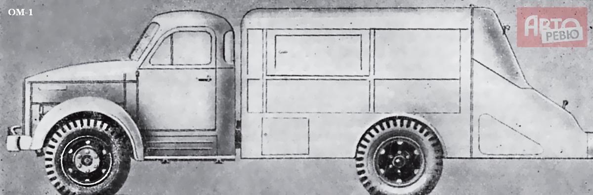 Прототипом послужил кузовной (бункерный) опытный мусоровоз №1, ОМ-1, разработанный примерно в 1955 году Академией коммунального хозяйства в Москве: он был похож на МС-4, но отличалась наличием уплотнительной плиты в приемном бункере, которую после его заполнения гидроцилиндр(ы) двигал верх вперед, перемещая содержимое в кузов и уплотняя мусор.
