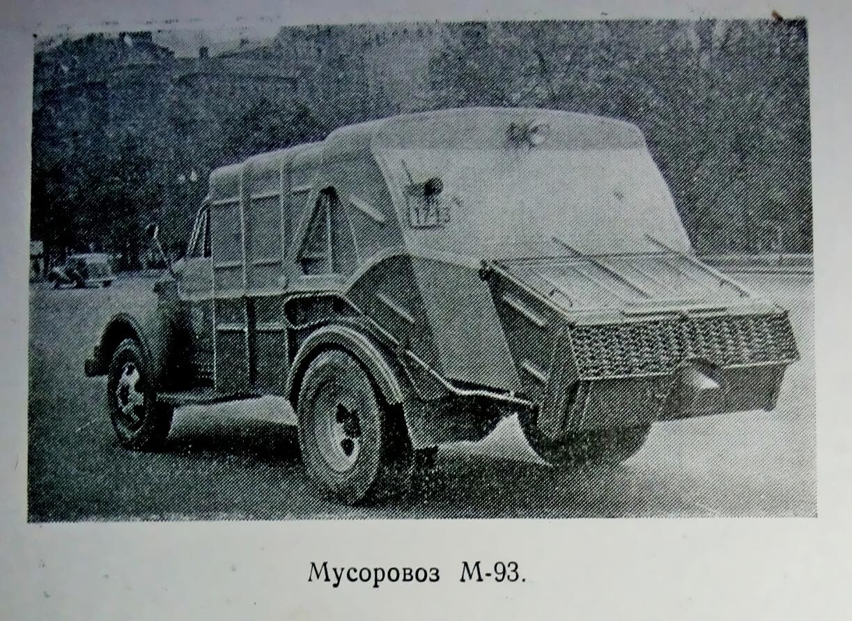 93М мусоровоз бункерного типа ёмкостью кузова 4.4 м3 на шасси ГАЗ-51Д 4х2, грузоподъемность 2 тонны, приемный бункер 0.42 м3, коэффициент уплотнения 1.6, загрузка задняя ручная, выгрузка самосвальная назад, мест: 2, вес: снаряжённый 3.71 тонн, полный 5.72 тонн, максимальная скорость 70 км/час.