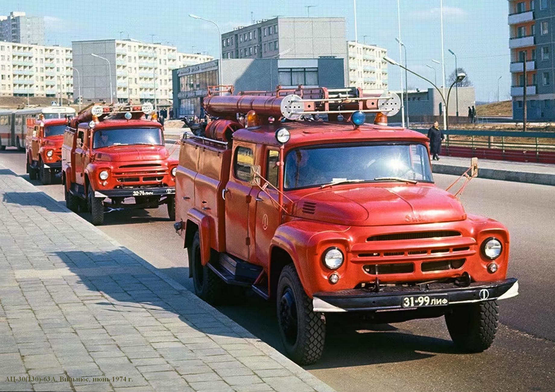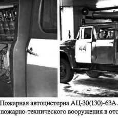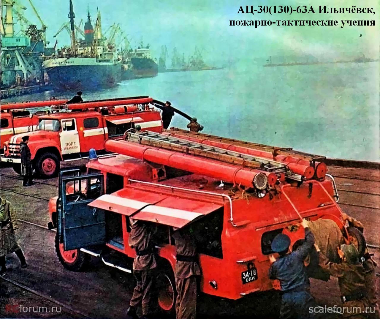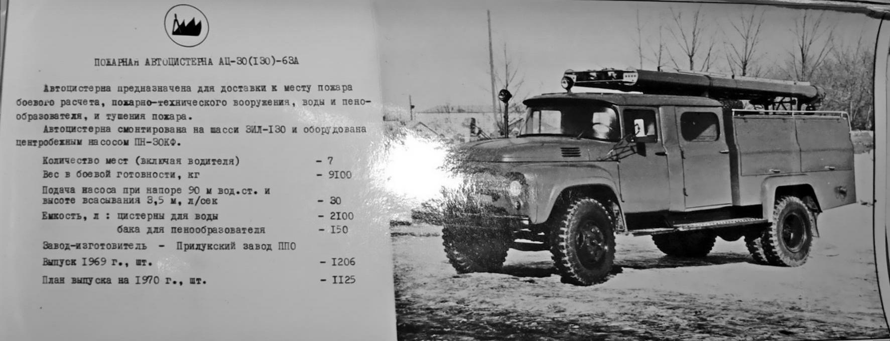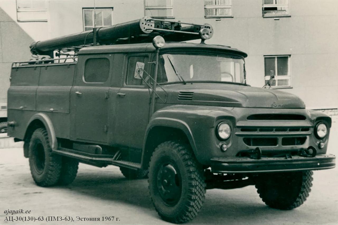 АЦ-30(130)-63А, она же АЦ-40(130)-63А пожарная автоцистерна ёмкостью для воды 2,1 м3 на шасси ЗиЛ-130 4х2, пенобак 150 л, насос ПН-30КФ/ПН-40 30/40 л/с, боевой расчёт 7 человек, полный вес 9.1 тонн, максимальная скорость 80 км/час.