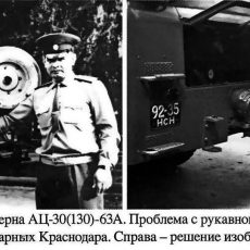 Переход на насос ПН-40 в начале 70-х никак не отразился на марке автоцистерны, которая до конца своей истории будет выпускаться под маркой АЦ-30(130)-63А. И если похожая ситуация с автоцистернами на шасси ГАЗ-66 объяснялась указанием в марке реальной производительности насоса, то в чем же дело здесь? Почему формально правильное обозначение АЦ-40(130)-63А встречается всего на нескольких подписях к книжным фотографиям, а марка АЦ-30(130)-63А — на всех бортовых табличках различных годов выпуска и в заводской отчетности? Технические условия (ТУ) на выпускаемую продукцию в социалистическое время действовали пять лет. Потом их следовало продлять, пересогласовывать и заново регистрировать. Довольно хлопотные по тем временам процедуры, порой приводящие, в случае каких-то вносимых изменений, к определенной перестройке производственного цикла. Ни времени, ни желания заниматься формальностями у производственников не было, и завод-изготовитель старался максимально долго использовать действующие ТУ.