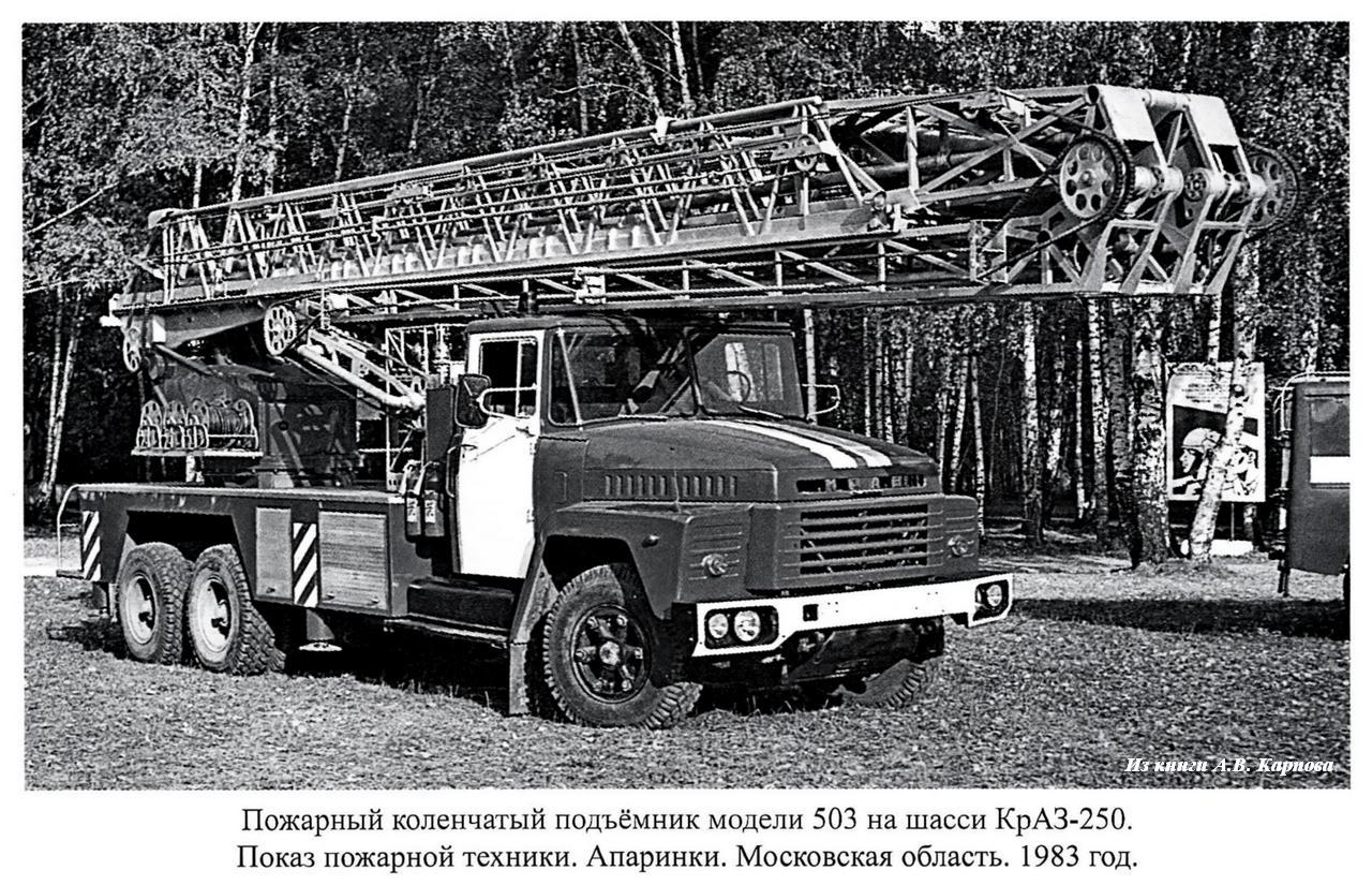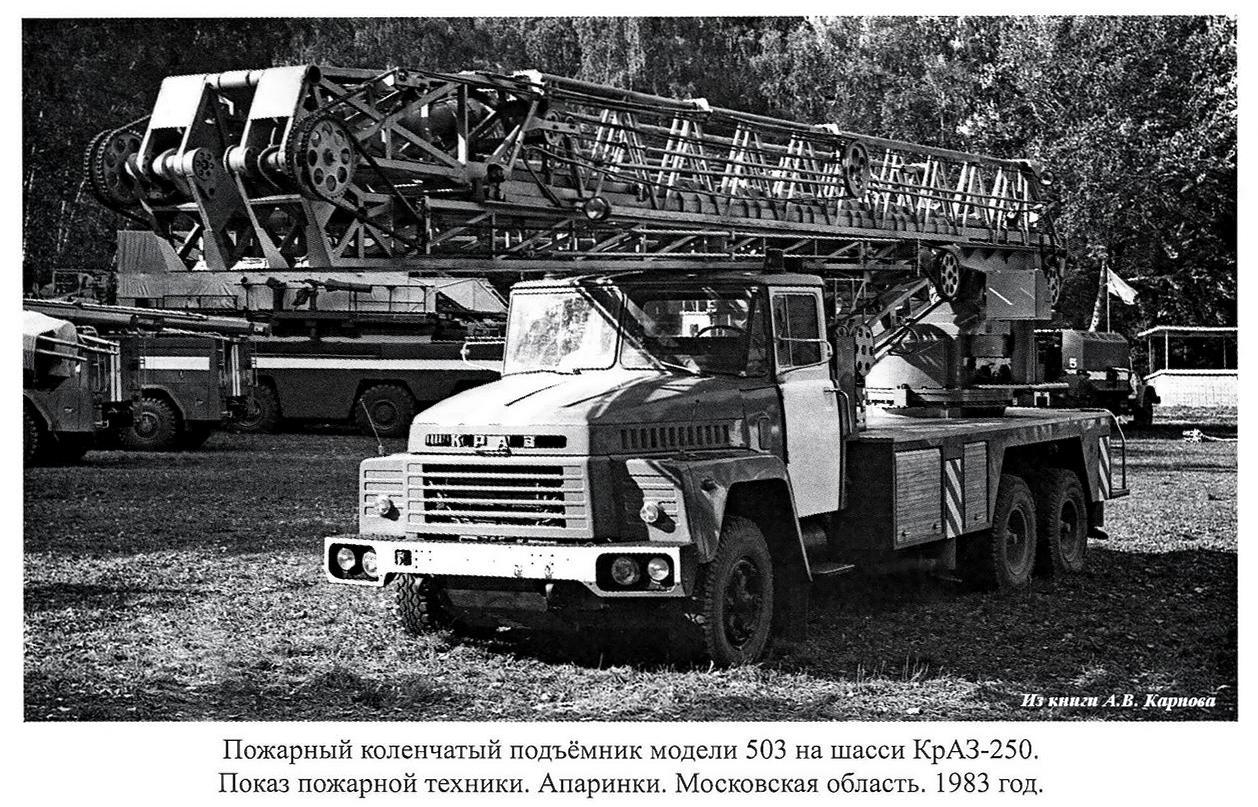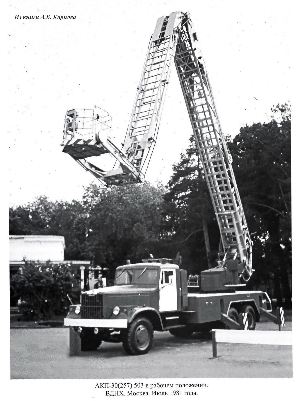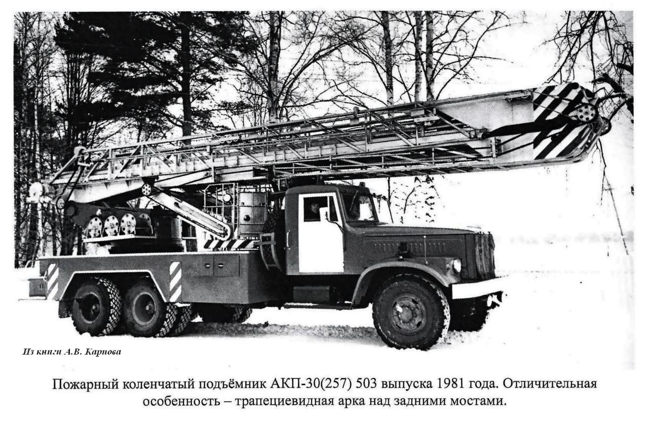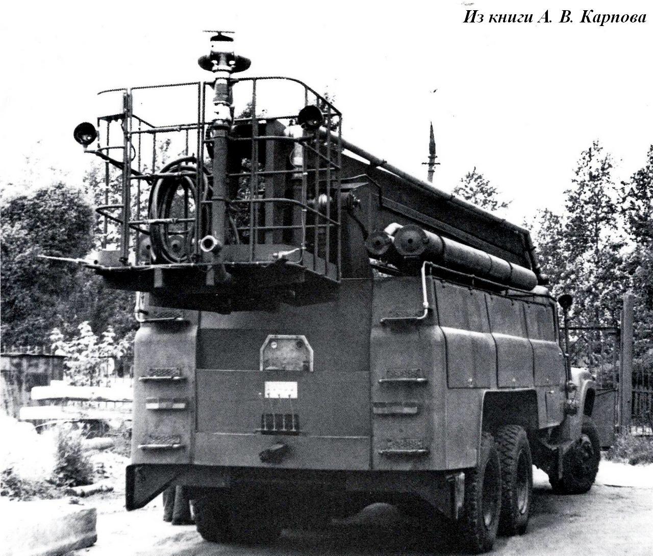 Из книги А.В. Карпова Пожарный автомобиль в СССР: в 6 ч., Ч. 3: Пожарный спецназ т. 1: Лестница в небо, Москва, 2015. Спасибо, многоуважаемый Александр Владимирович!