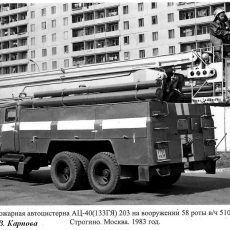В 1982 году Прилукским заводом выпускается установочная серия из трёх пожарных автомобилей АЦ-40 (133ГЯ) 203. По иронии судьбы, эти первые три автомобиля так и останутся последними. Вместо обещанных 135 единиц советская пожарная охрана получит всего четыре пожарные автоцистерны. Думаю, что планы в отношении массового применения этих автомобилей были традиционно сильно преувеличены. Низкая маневренность ЗиЛ-133ГЯ и шасси обычной проходимости допускали применение автоцистерны в основном в крупных городах, на прямых и широких дорогах с твёрдым покрытием. Как мы помним, незначительные преимущества, которые имели пожарные автоцистерны моделей 181 и 181 А касались достаточно большого запаса воды (до 5000 л). В модели 203 из-за установки коленчатого подъёмника запас вывозимых на пожар огнетушащих веществ был значительно уменьшен, а высота коленчатого подъёмника в 18 м была уже мала для современной высотной застройки.