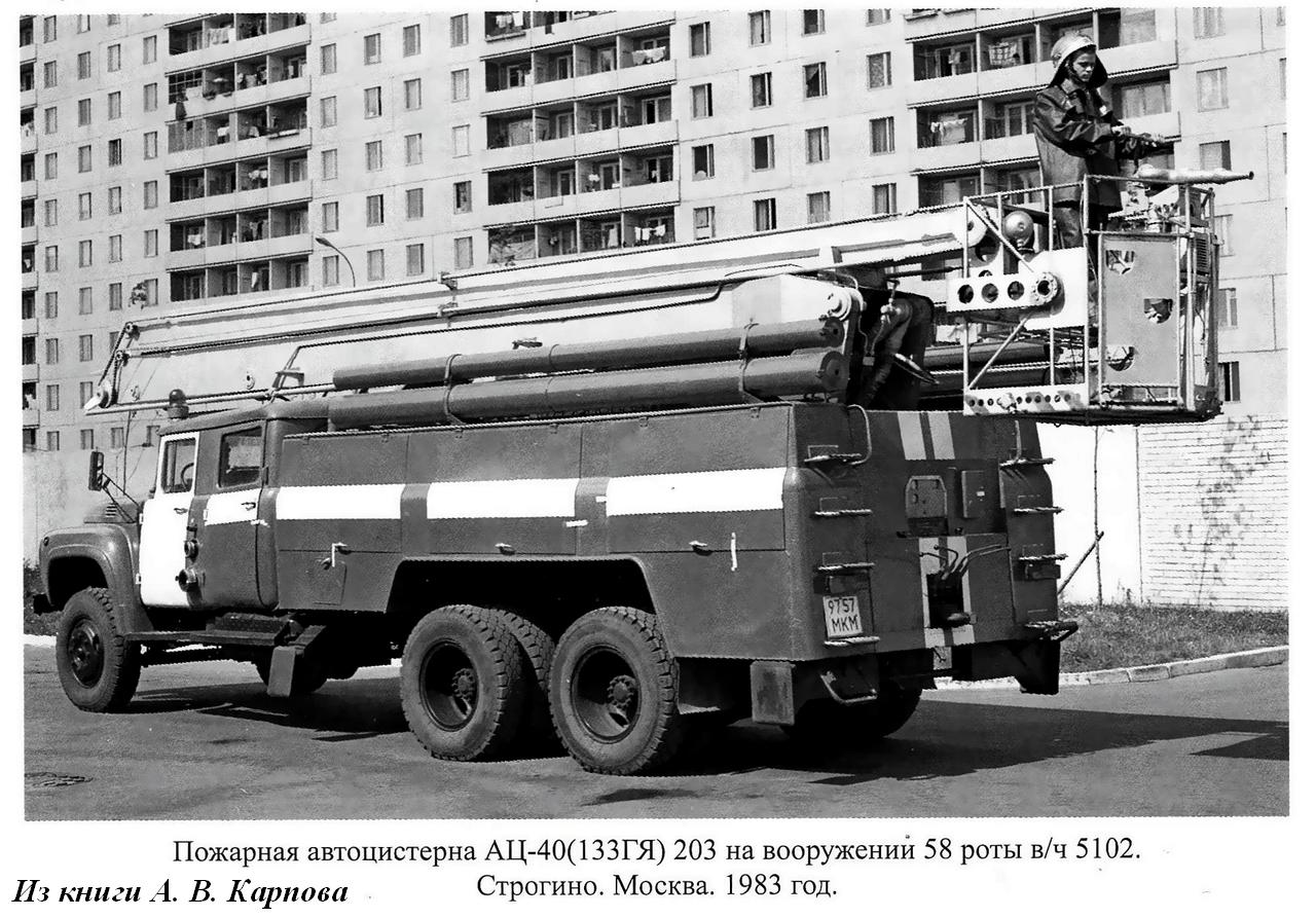 В СССР подобная попытка была предпринята усилиями двух производственных объединений - Прилукского и Торжокского, в результате взаимодействия которых должен был появиться на свет невиданный ранее отечественный пожарный автомобиль. Его марка АЦ-40 (133Г1) 203, вопреки сложившейся системе, не отражала один из важных параметров этого автомобиля - высоту подъёма коленчатого подъёмника. Но обо всём по порядку.