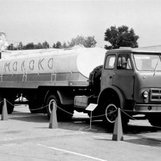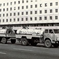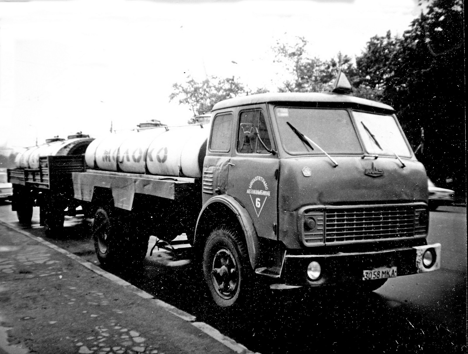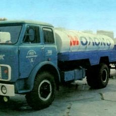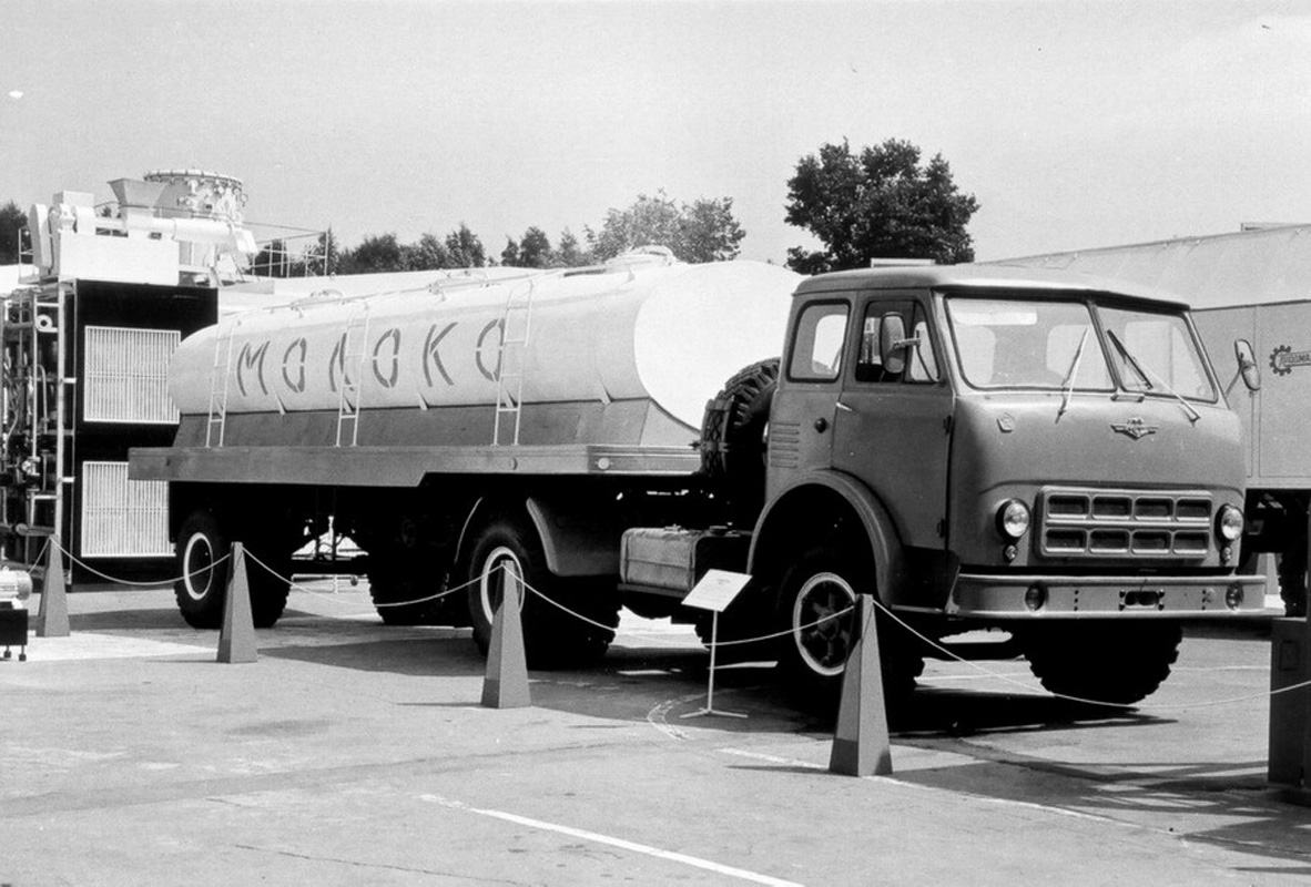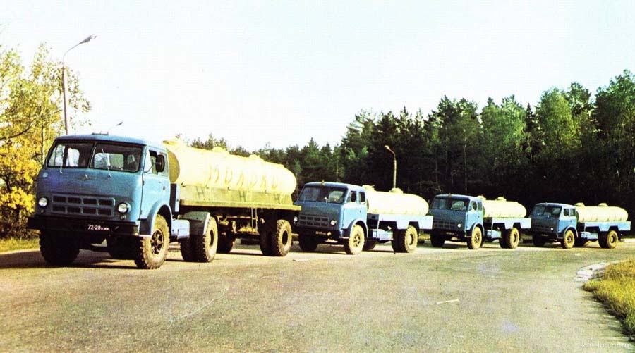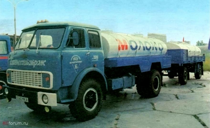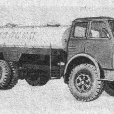АЦПТ-6.2 2-секционная автоцистерна для перевозки молока ёмкостью 2х3.1 м3 на шасси МАЗ-5334 4х2, мест: 3, вес: снаряженный 7.91 тонн, полный 15.3 тонн, максимальная скорость 85 км/час.