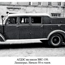 … Интересен опыт пожарных Ленинграда, создавших АГДЗС на базе автонасоса ПМГ-5. Причём, сохранив его дополнительную трансмиссию и установив на бампер шестерёнчатый насос. Конечно, подавать воду на тушение пожара специальному автомобилю необходимости не было, а вот использовать его для привода дымососа - вполне реально. Принцип действия такого привода был обратен обычным пожарным понятиям - не механическая энергия насоса превращалась в поступательное движение воды, а движение воды по замкнутой рукавной линии вращало лопасти вентилятора. Возможно, этот автомобиль своеобразный первенец этого интересного начинания, ведь шестерёнчатый насос для этих целей идеален. Вскоре идея будет подхвачена другими, и впоследствии это решение широко применялось в советской пожарной охране. А возвращаясь к самому автомобилю, отметим наличие на его крыше мощного прожектора. Учитывая наличие привода на насос, мне кажется, что он подключался к внешнему источнику электроэнергии. Эксплуатировался этот АГДЗС достаточно долго, до прихода на смену ему новой техники.