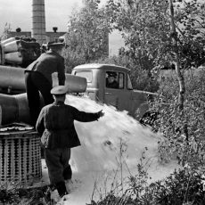 Пожарная охрана СССР тех лет (прим. 1960-е г.) просто «болела» воздушно-пенным тушением, которое было «на слуху», активно обсуждалось и совершенствовалось. Так в плане работы ПТС Новосибирского гарнизона пожарной охраны появляется тема №2 «Получение многократной пены с инертным заполнителем от турбореактивной установки».