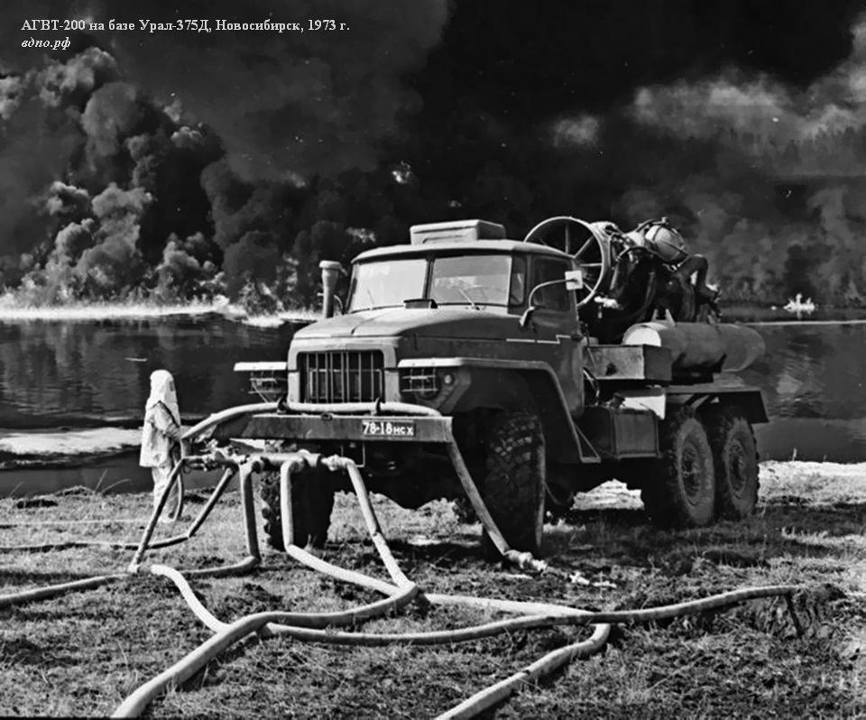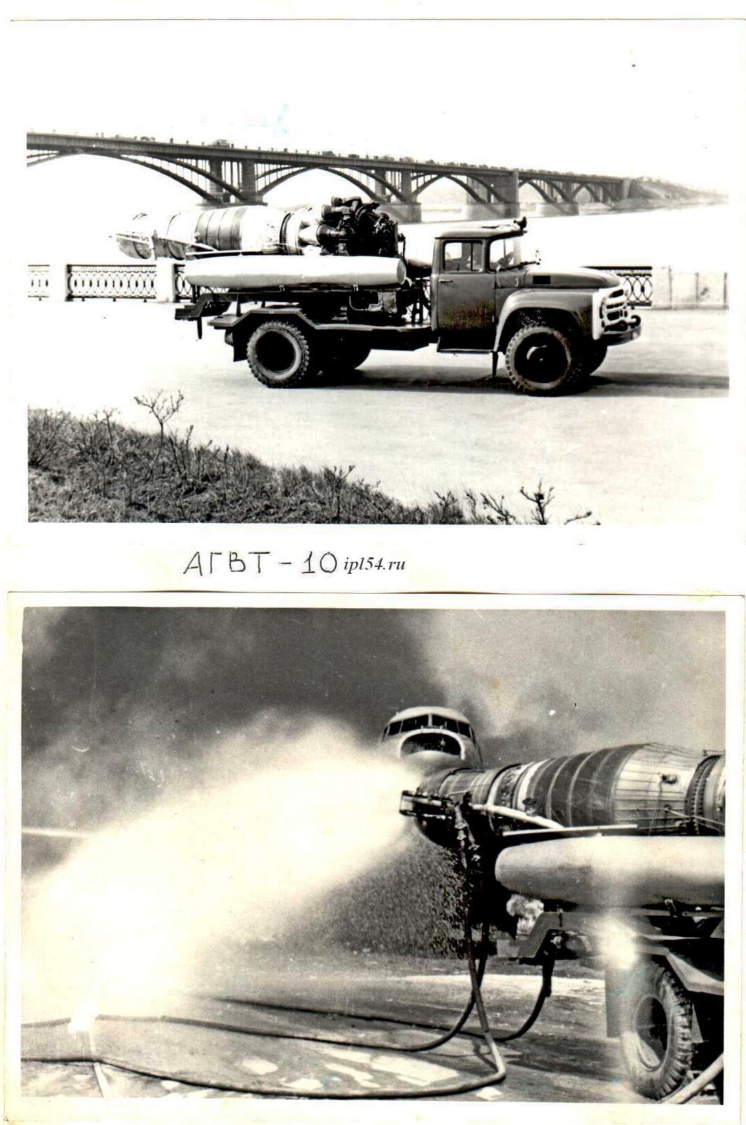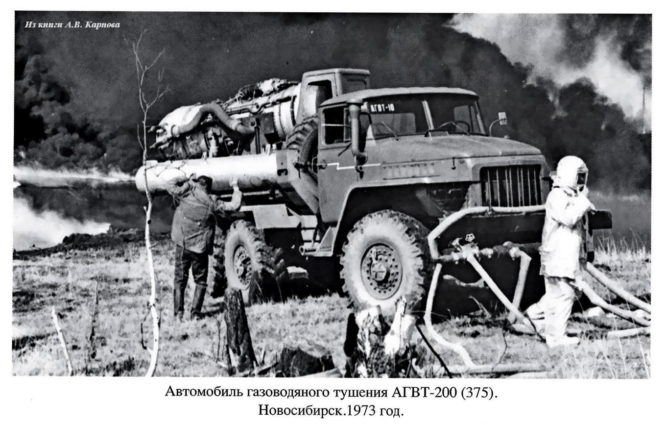 В Новосибирском музее пожарно-спасательной службы хранится интересный документ: авторское свидетельство №237772 от 12 декабря 1968 года с длинным названием «Способ тушения пожаров на нефтяных, газовых и газонефтяных скважинах, а также струй горящих газов». Данное свидетельство документально подтверждает приоритет новосибирских пожарных в создании автомобиля газоводяного тушения. Десятилетний труд ученых и инженеров Пожарно-технической станции УПО Новосибирского Облисполкома закончился успешным созданием целого семейства  автомобилей газоводяного тушения. Серийная установка АГВТ-100 состояла из самоходного шасси ЗиЛ-130, авиационного турбореактивного двигателя, систем водоснабжения, комплекта противопожарного оборудования и пр., эффект тушения достигался за счет направленного потока инертного газа.