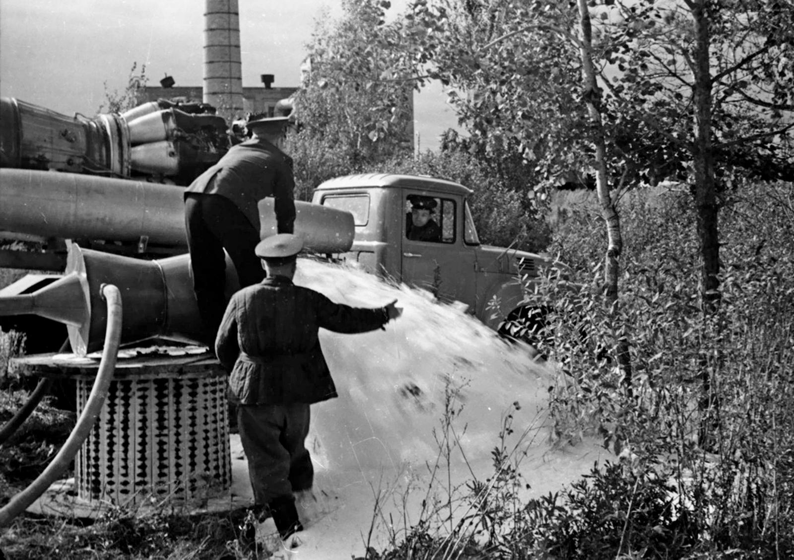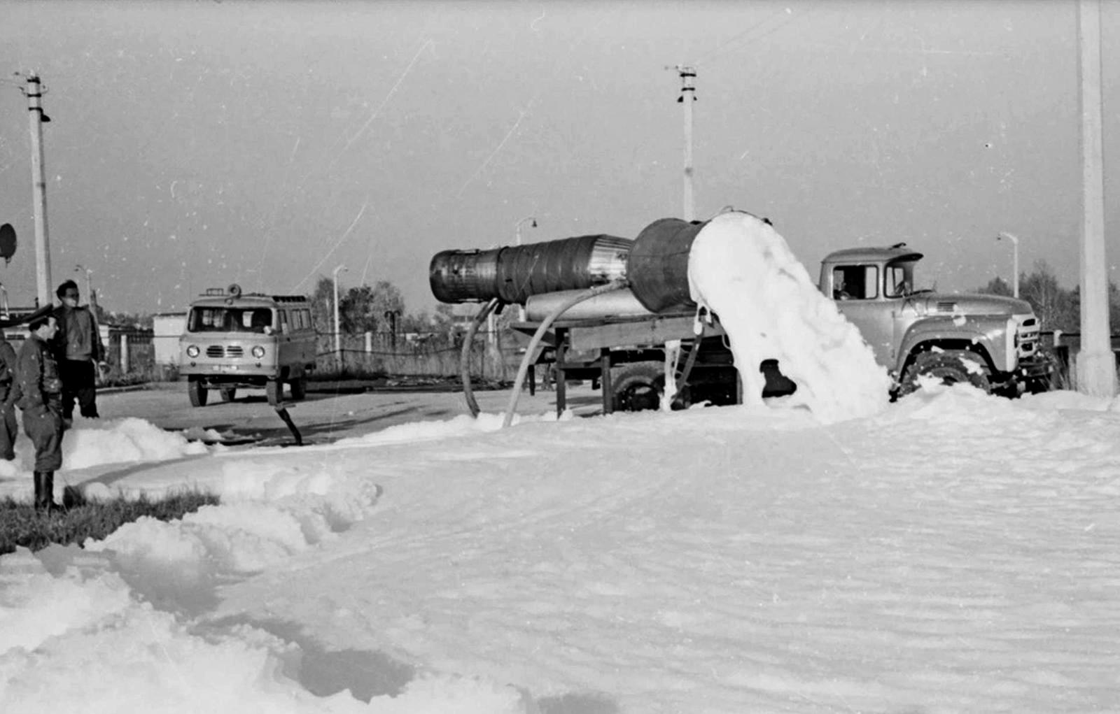 Пожарная охрана СССР тех лет (прим. 1960-е г.) просто «болела» воздушно-пенным тушением, которое было «на слуху», активно обсуждалось и совершенствовалось. Так в плане работы ПТС Новосибирского гарнизона пожарной охраны появляется тема №2 «Получение многократной пены с инертным заполнителем от турбореактивной установки».