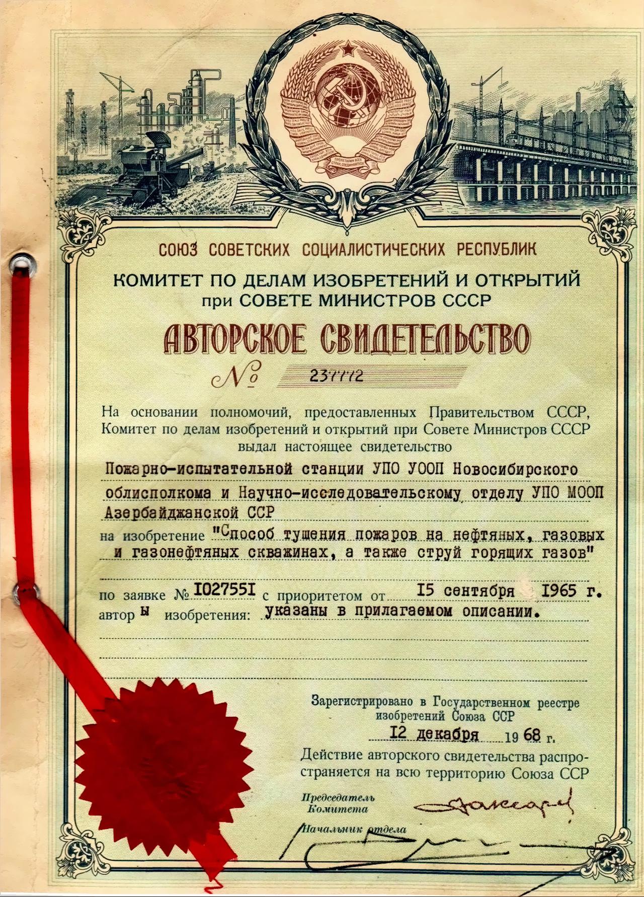 С 1965-66 г. турбореактивные установки  проходили проверку на эффективность тушения пожаров газонефтяных фонтанов в Азербайджанской ССР, где специалисты Баку технически обосновали возможность использования турбореактивных установок для борьбы с пожарами газонефтяных фонтанов, после чего в 1968 году было выдано авторское свидетельство на изобретение.