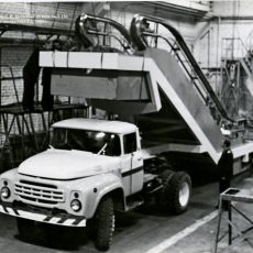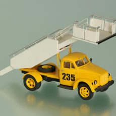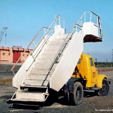 Аэродромный трап для посадки (высадки) пассажиров на борт самолета на шасси ГАЗ-51А 4х2 с раздвижной лестницей от авиатрапа ТПС-22 с гидравлическим приводом, рабочие: высота примерно до 4,2 м, вес в пределах 3.5-4 тонн, максимальная скорость скорость 3-30 км/час,