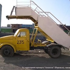 19.05.2009, 21:21 NoName: «…про трап на базе Газ 51. Несколько лет назад улетал из Алыкеля, заметил его стоящим за территорией аэропорта, просто выкатили на свалку. Пошел, поснимал его. Вот пара фоток. Много раз по нему поднимался и спускался с борта. И вот отслужил свое старичок…»
