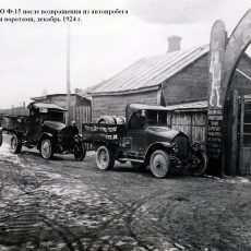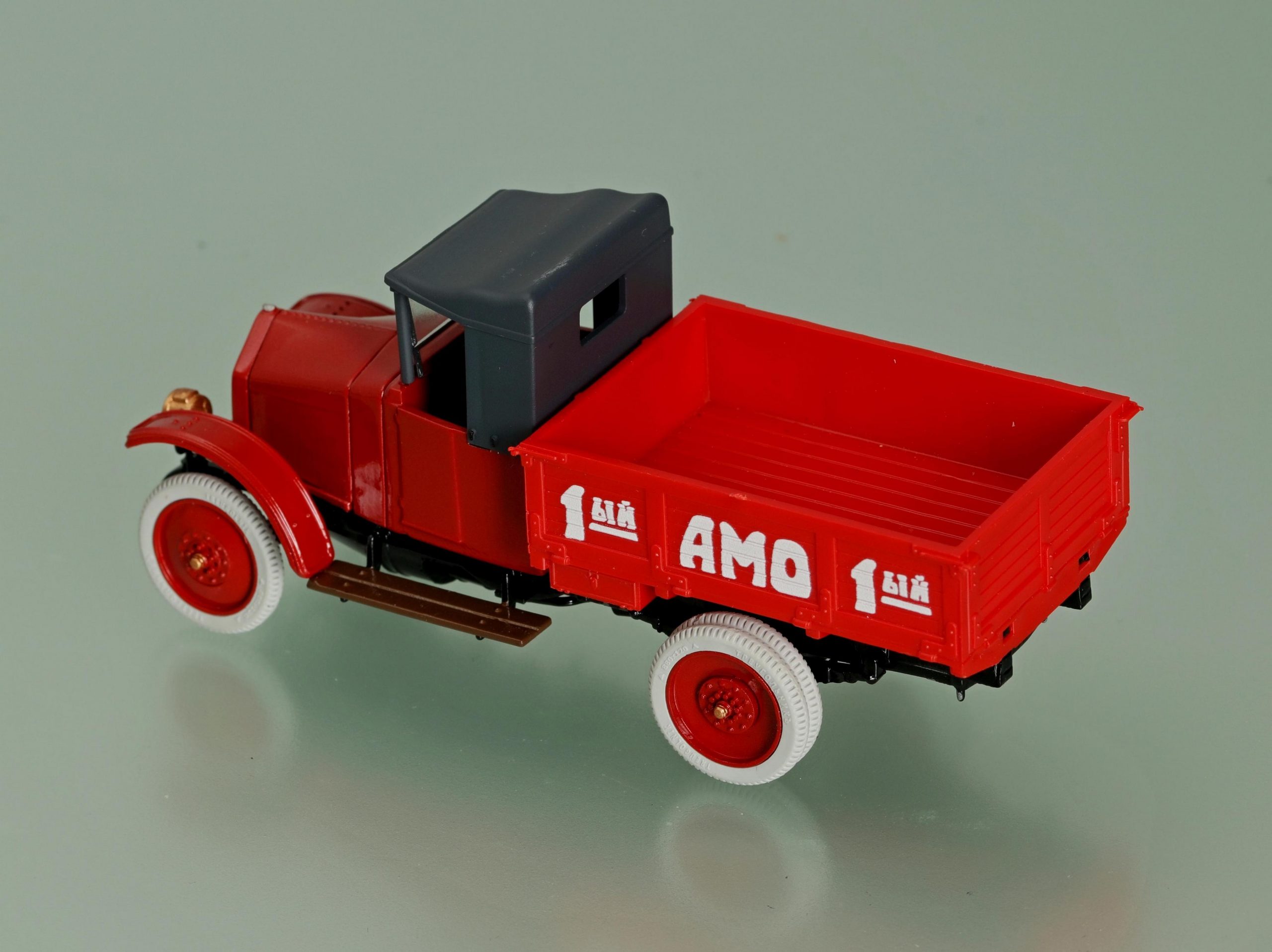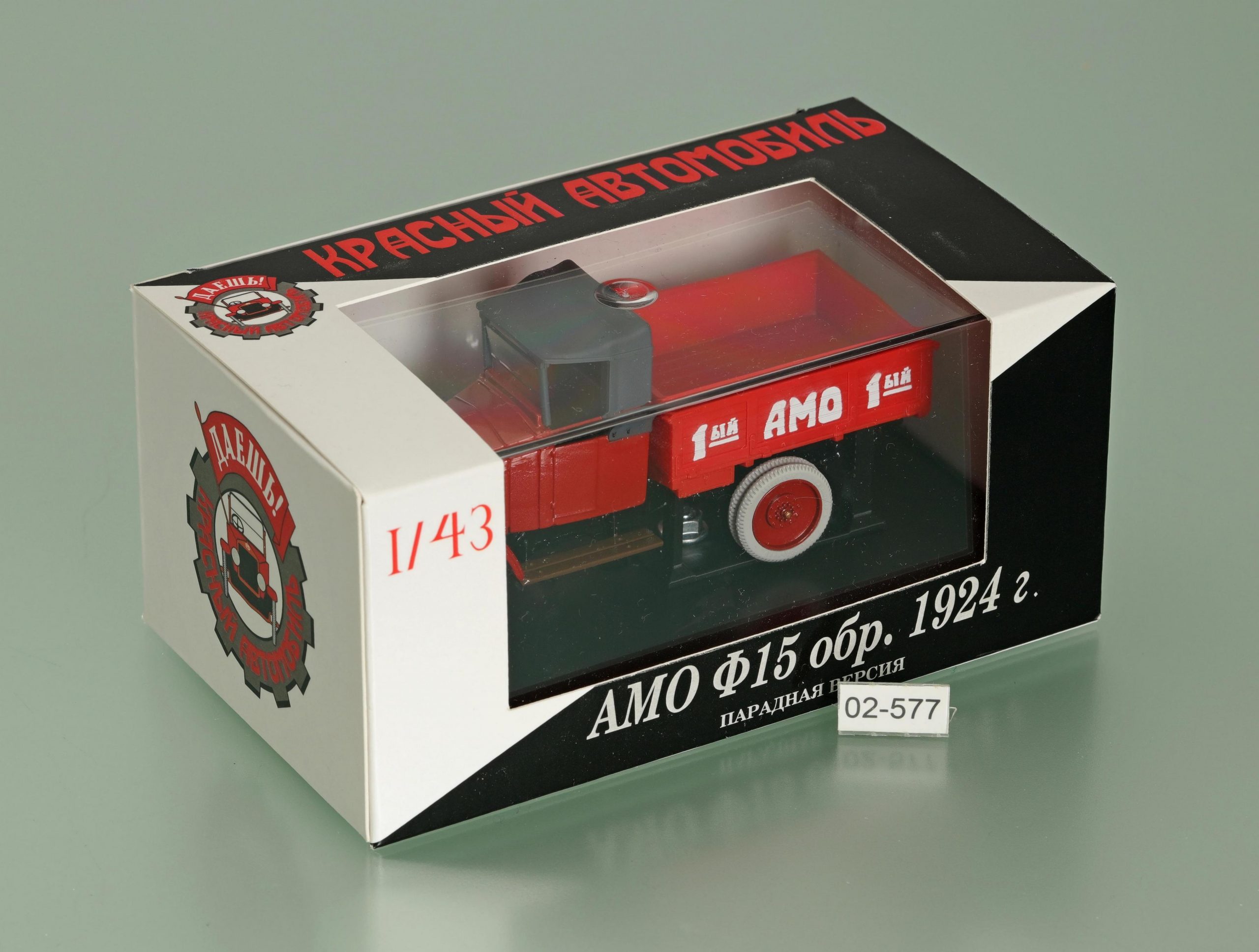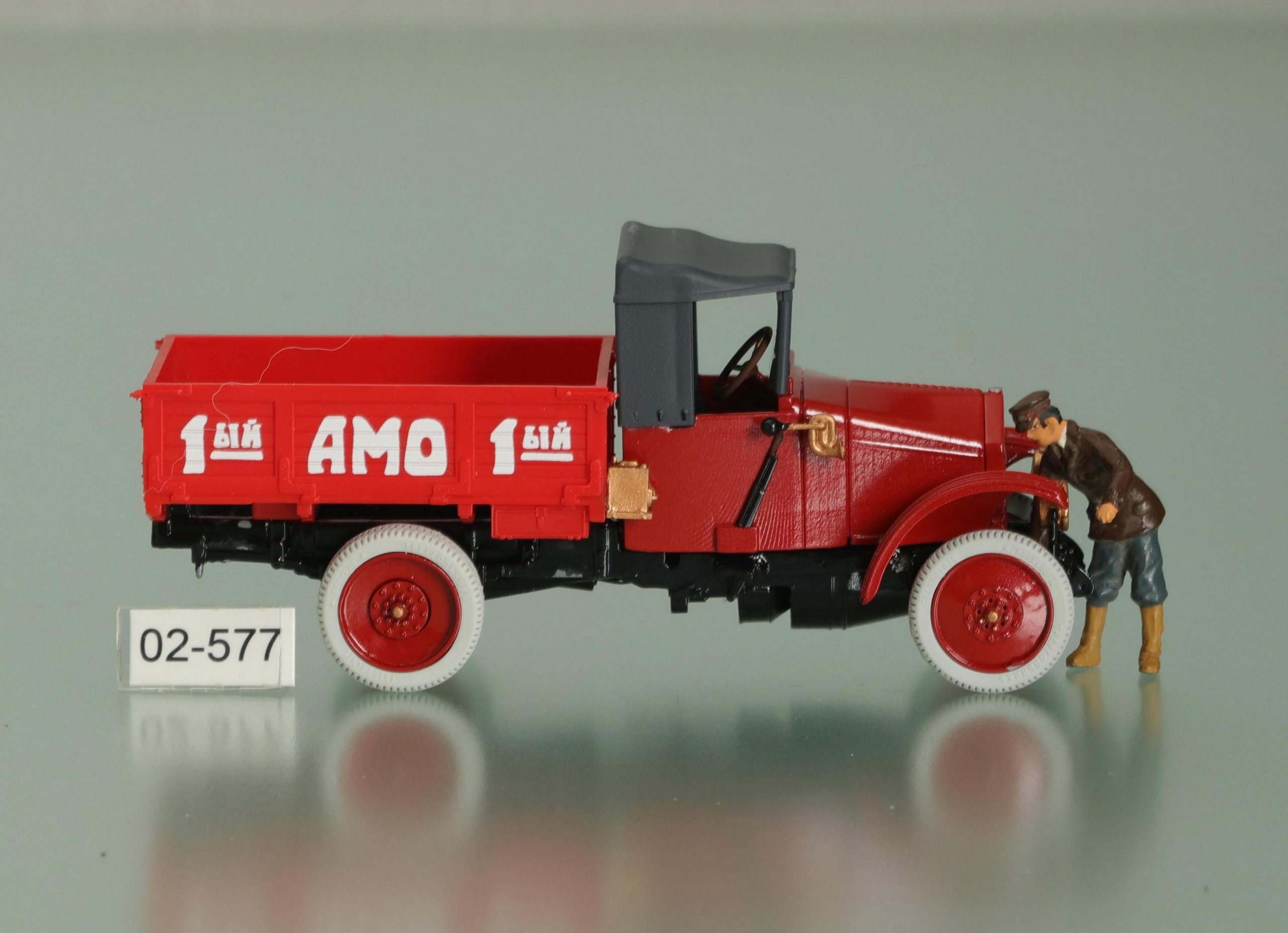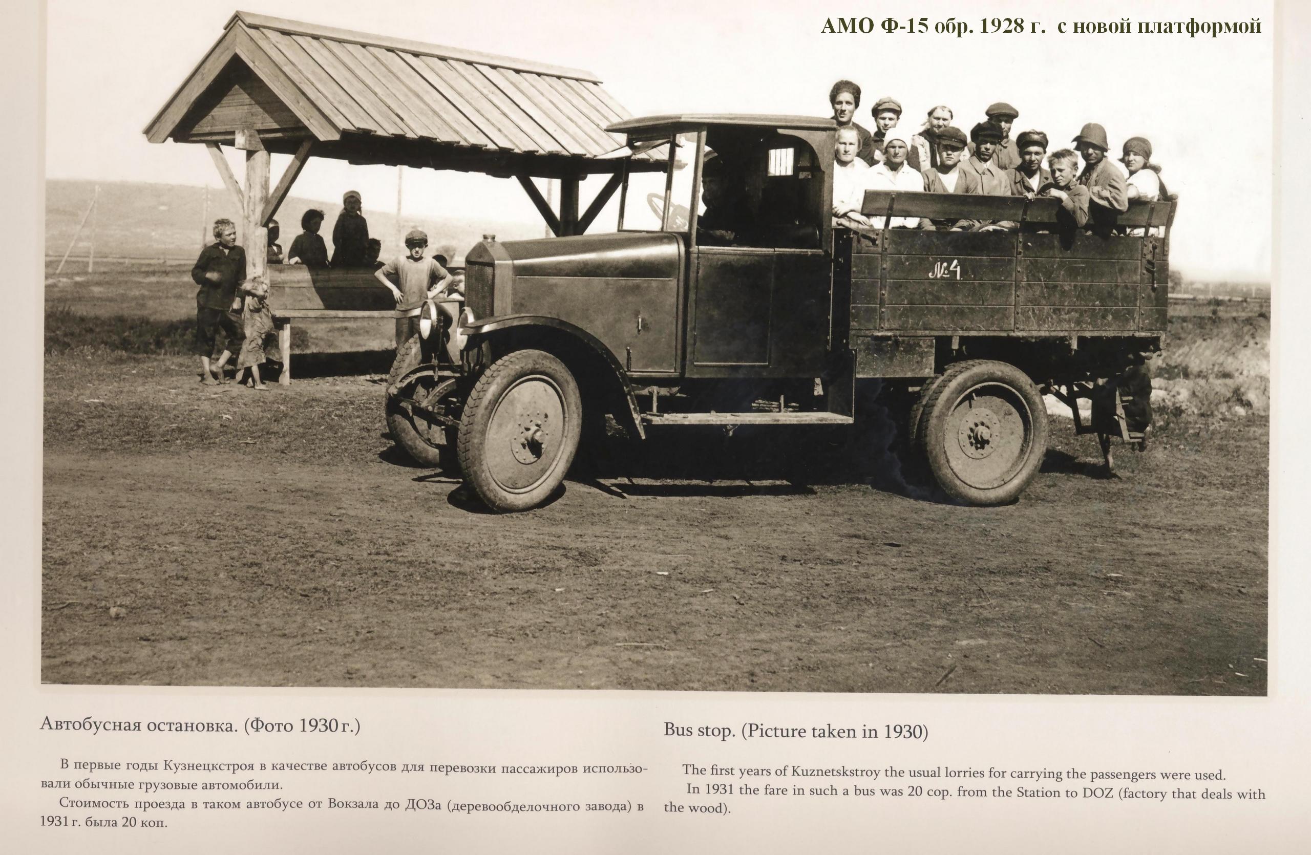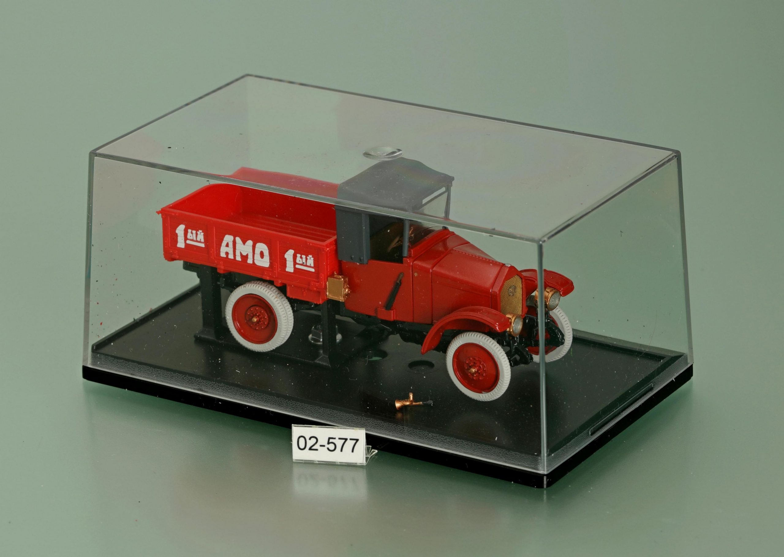АМО тип Ф-15 экземпляр №1 из 1-й партии 10 шт. 1924 год, бортовой грузовик грузоподъемностью 1,5 тонн, мест: 2, кабина с мягким верхом, руль справа, вес: снаряженный 1.92 тонн, полный 3.42 тонн, максимальная скорость 42.5 км/час.