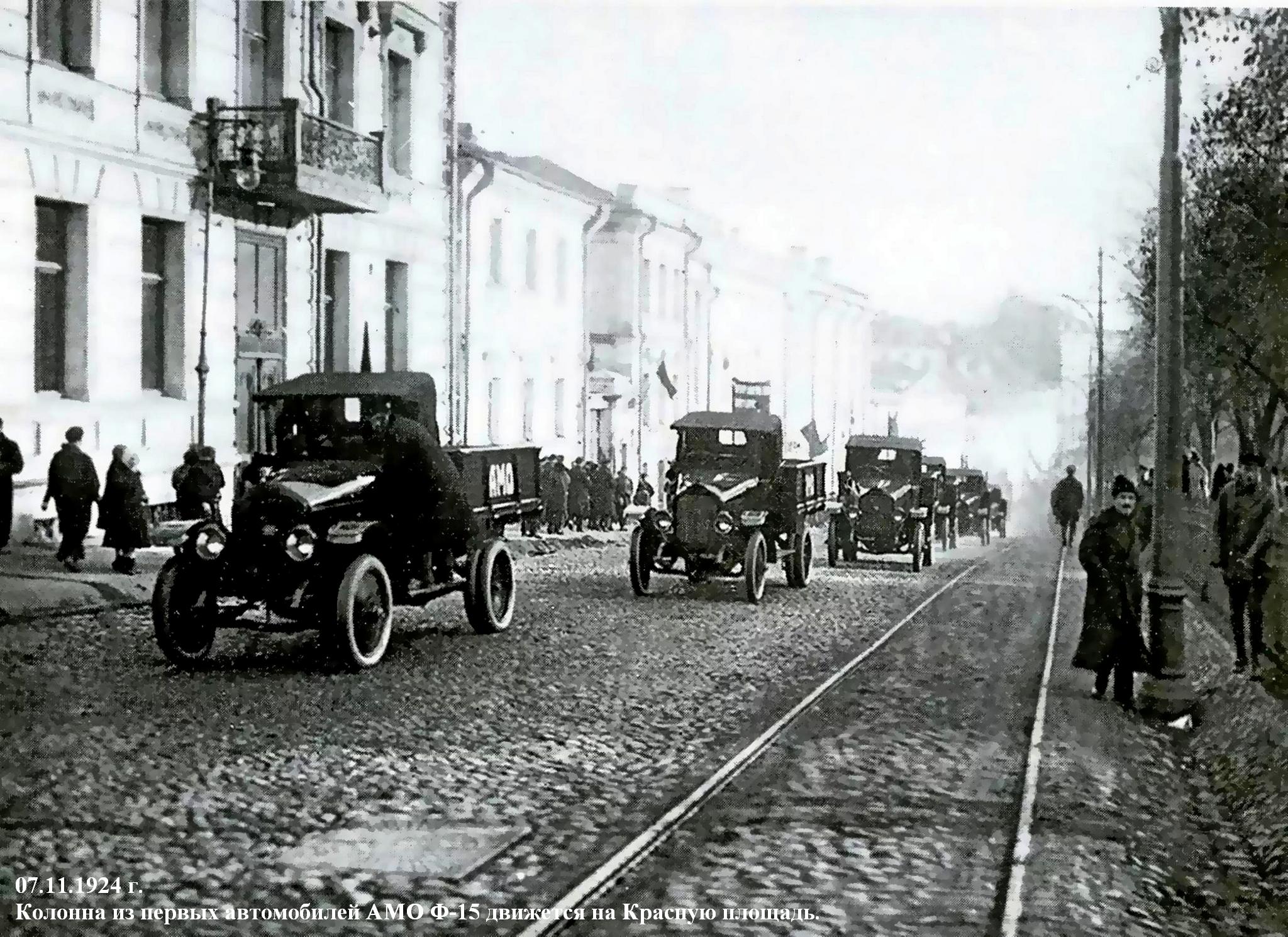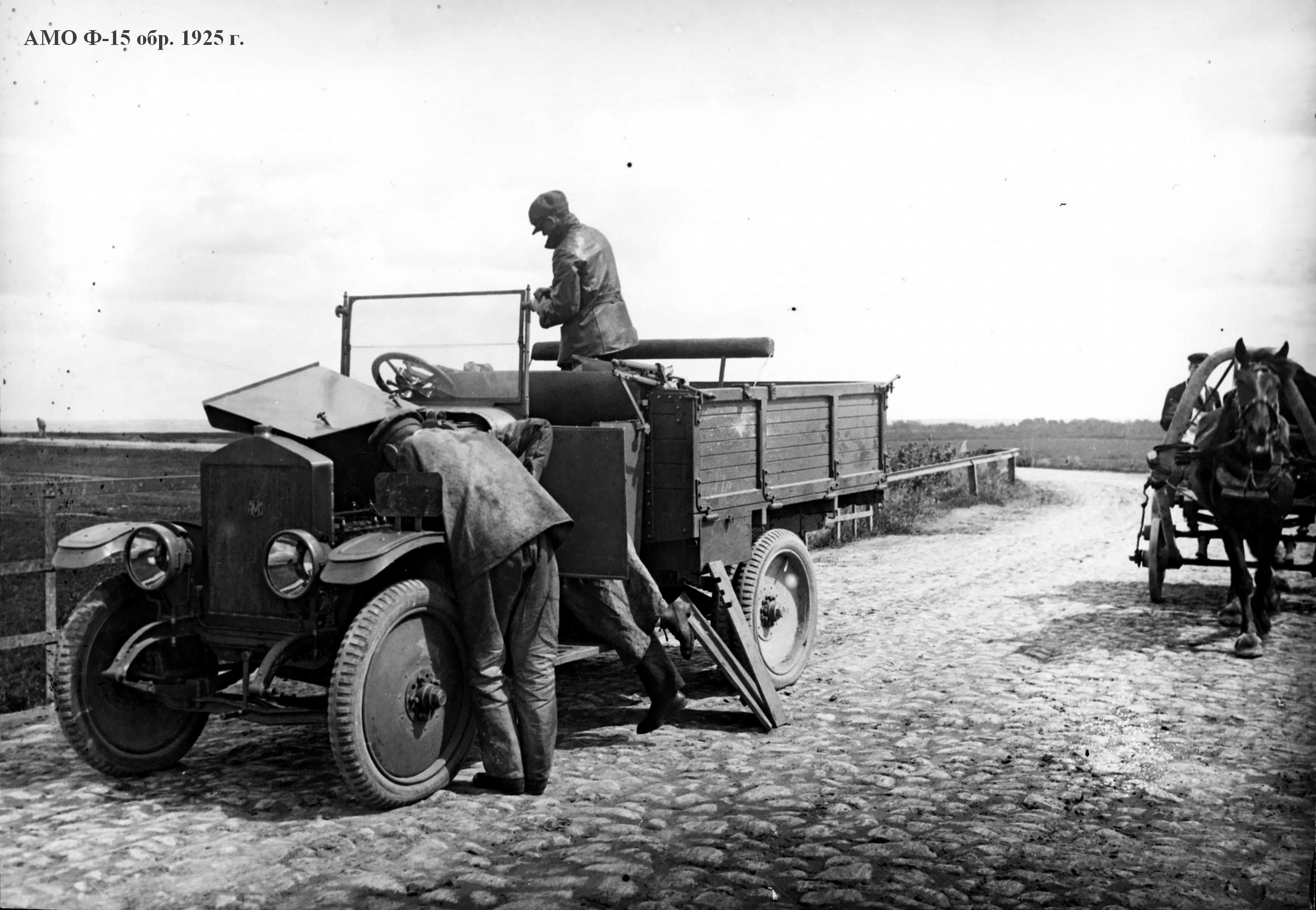 Но тут вмешались военные, выдвинувшие требование начать производство «полуторок». Заводу пришлось полностью пересмотреть программу, в качестве претендентов для нового производства рассматривали 1,5-тонные грузовые автомобили на основе конструкций FIAT 15 Ter, White TBC и «Руссо-Балт C 24/40». В силу различных обстоятельств (в первую очередь брались в расчёт возможные сроки выполнения) выбор пал на первоначальный образец машины по типу FIAT. Переориентация производства на несколько лет отодвинула событие, которое произошло лишь в ночь на 1 ноября 1924 года, когда заводчане собрали первый советский грузовик АМО Ф-15, конструктивно схожий с итальянским автомобилем FIAT 15 Ter. Все его части были изготовлены в СССР. Через неделю колонна из десяти таких автомобилей участвовала в параде на Красной площади. АМО Ф-15 выпускали до 1931 года. Шасси этой машины служили для постройки грузовиков различного назначения, карет скорой помощи, штабных пассажирских автомобилей, пожарных машин, бронеавтомобилей и автобусов.