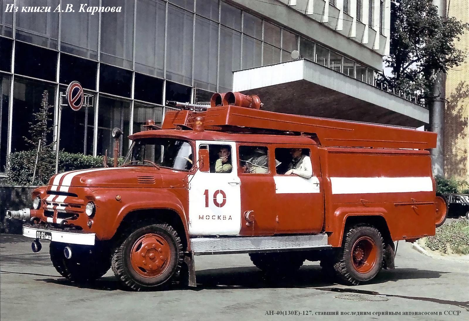 … Со временем конструкторы задумываются над конструкцией и на свет появляются модели со средним расположением насоса - и служат свыше 30 лет... Это машины Прилукского завод автонасос АН-30(130) мод.127 для Московского гарнизона и насосно-рукавный АНР-40(130) мод.127А. Последняя более массовая модификация. Большой боевой расчет из 9 человек, увеличенный до 300 л бак для пенообразователя, кассетная укладка рукавов, необходимое ПТВ. Пока автоцистерна подает первый ствол, он устанавливается на водоем и прокладывает магистральную линию к месту пожара. По окончании воды в цистерне, расчет переключает линию к его разветвлению и тушение не прекращается. "Второй ход" по тактической классификации в своем классическом исполнении.