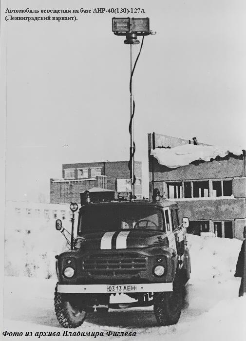 …ещё в 1970-е года, активной переделкой АНР (и АН) занималась пожарные отряды технической службы Москвы, Ленинграда и других гарнизонов. Их стараниями АНР превращались в автомобили освещения, дымоудаления, пароотогрева, водозащитной службы и газодымозащитной службы. Вместо насосов устанавливались электрогенераторы с приводом от двигателя шасси, вместо рукавов в отсеки укладывалось специализированное ПТВ и АСИ — дымососы, прожектора, мотопомпы, шанцевый и аварийно-спасательный инструмент, и прочее оборудование.