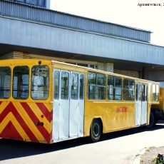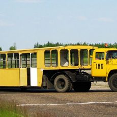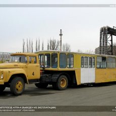 АППА-4 низкопольный Автопоезд Пассажирский Перронный Аэропортовый из 1-осного двустороннего 4-дверного пассажирского полуприцепа с седельным тягачом КАЗ-608 4х2, мест: сидячих 16, общее до 120, снаряжённый вес до 8.5 тонн,