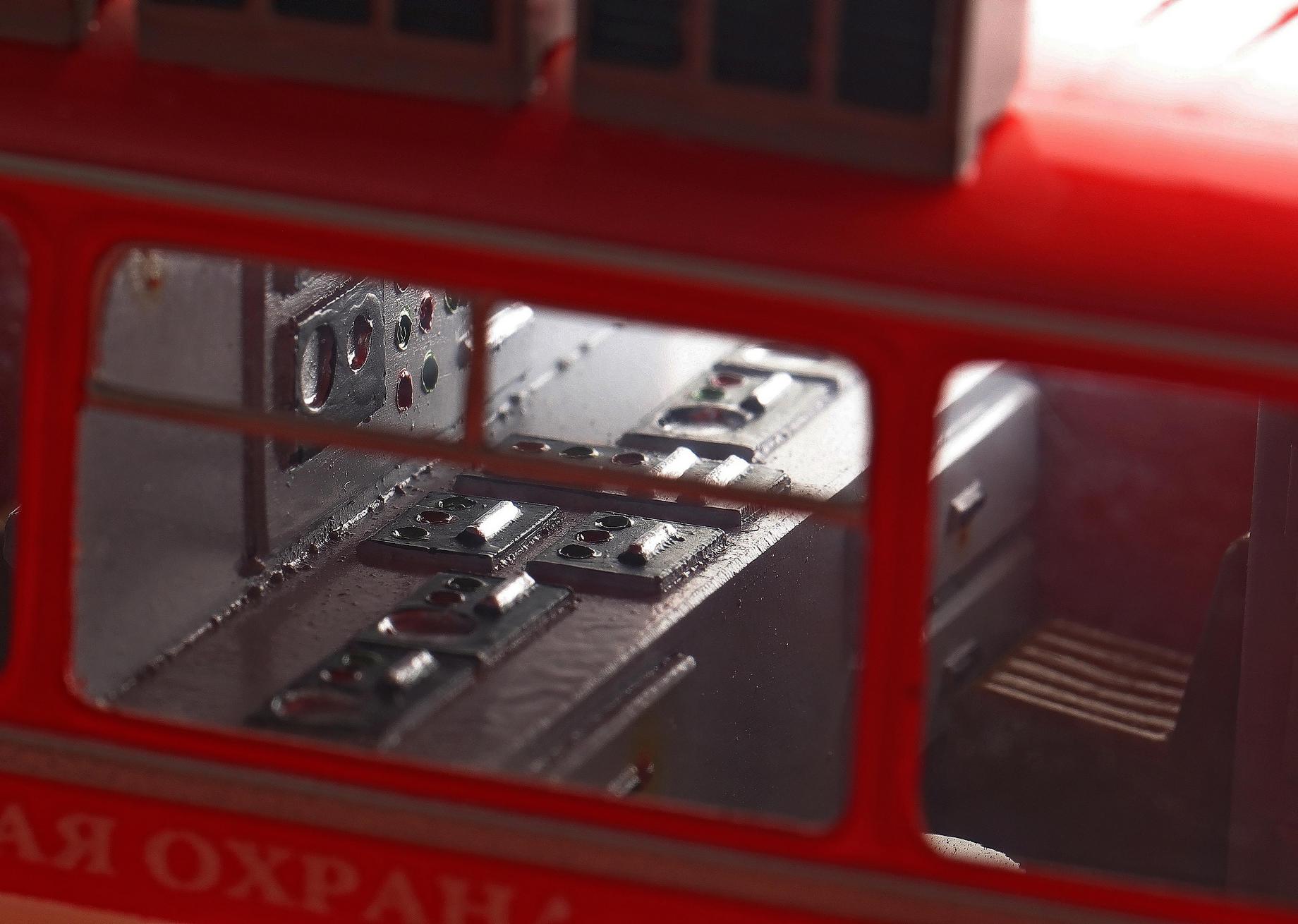 В секционном шкафу 31 размещены выносной штабной стол, динамики мощностью 50 Вт, нагрудные фонари и (в специальном ящике) переносные радиостанции. Рядом со шкафом установлено выдвижное устройство флагштока 10.