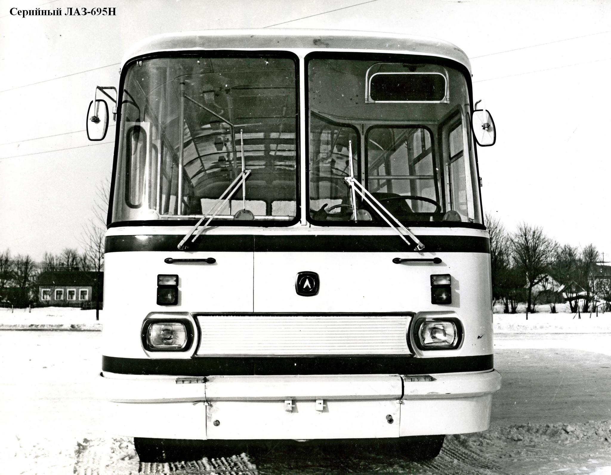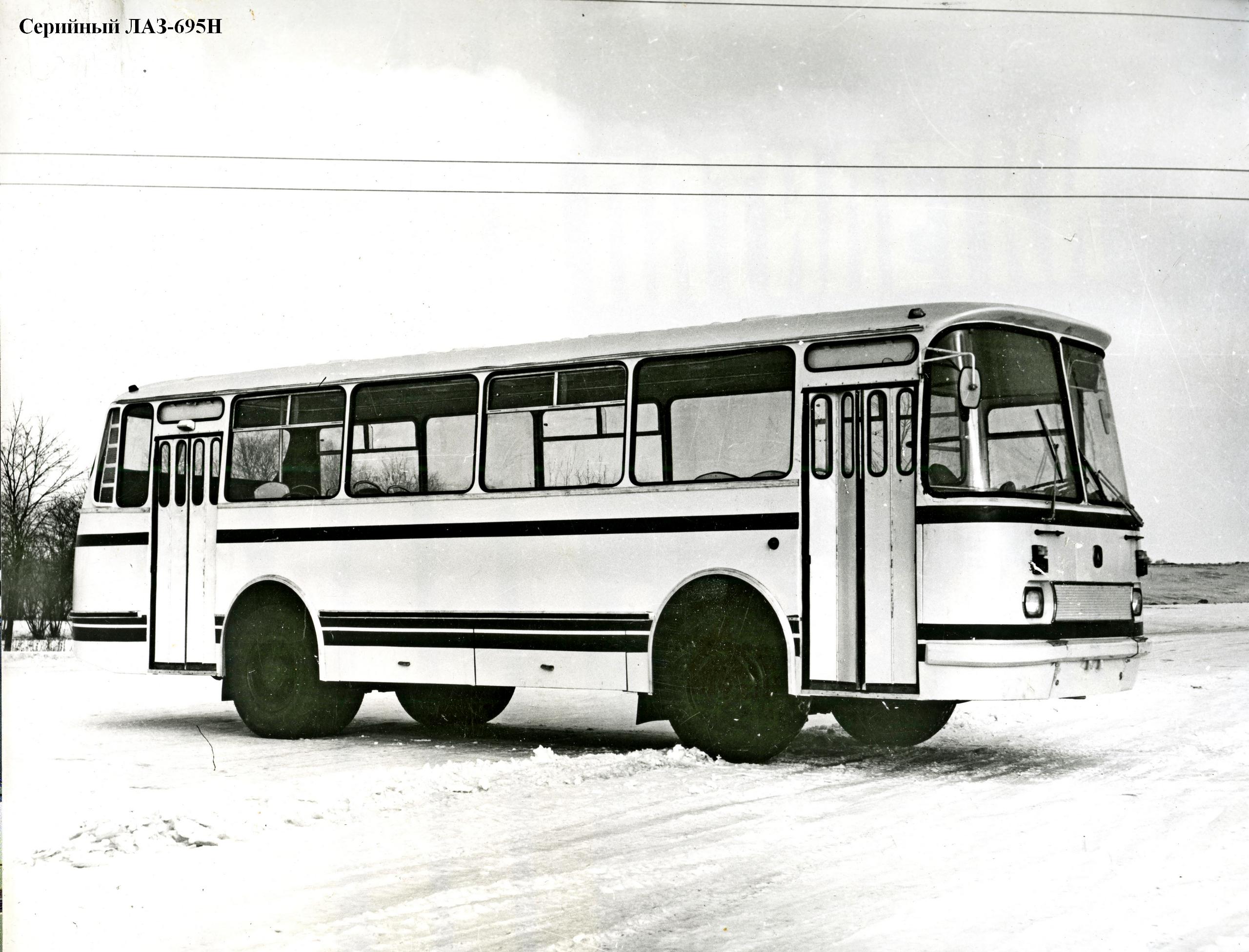 Первые опытные образцы ЛАЗ-695Н появились летом 1969 года. Автобусы, по сравнению с моделью 695М, получили новую переднюю часть с большими лобовыми стёклами и, что самое главное, унифицированные спереди и сзади входные двери. Правда, на самом первом образце двери были двухстворчатые, а на следующем опытном образце автобуса ЛАЗ-695Н 1971 года двери стояли уже 4-створчатые, но задняя часть автобуса по прежнему была аналогичной ЛАЗ-695М.