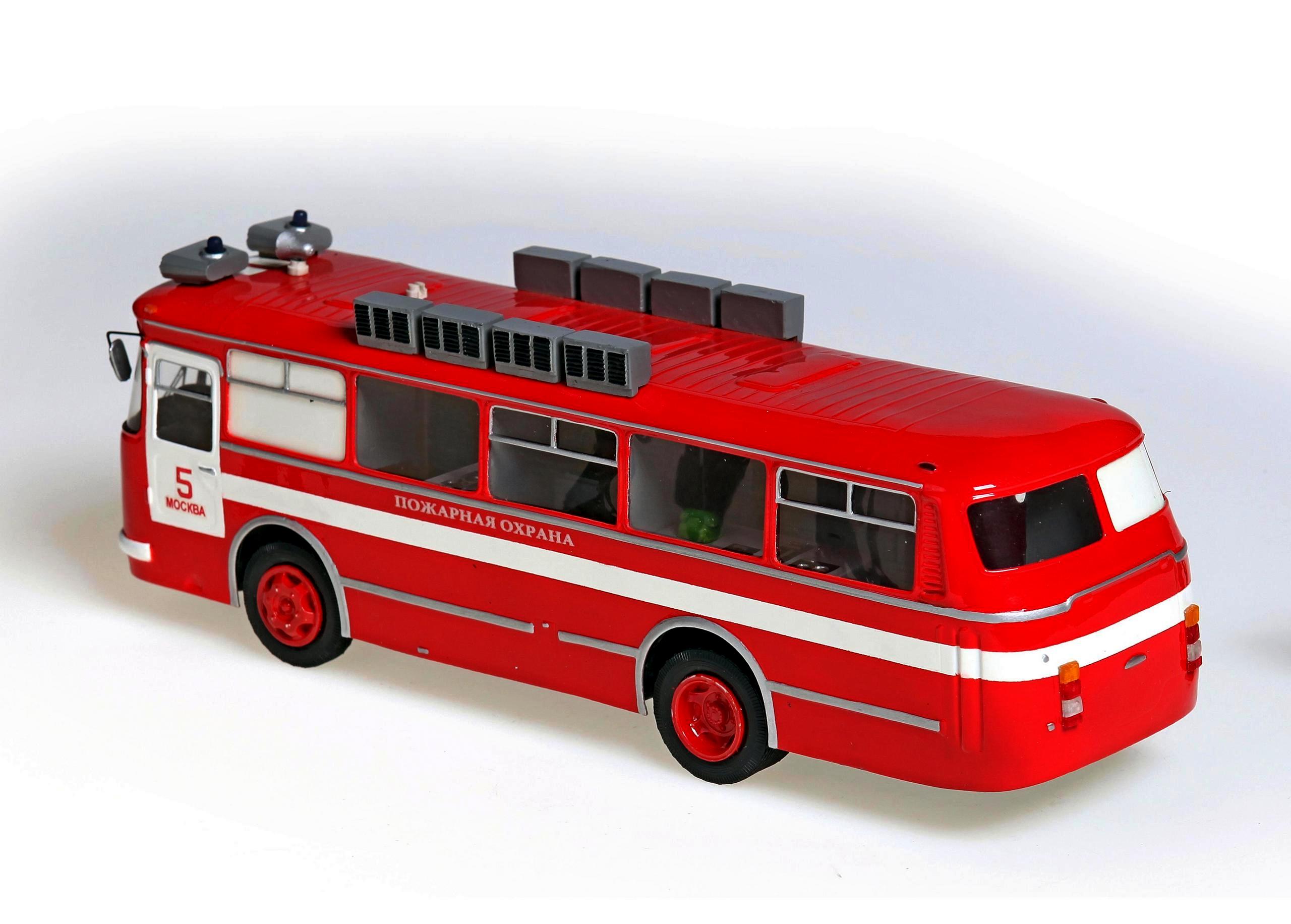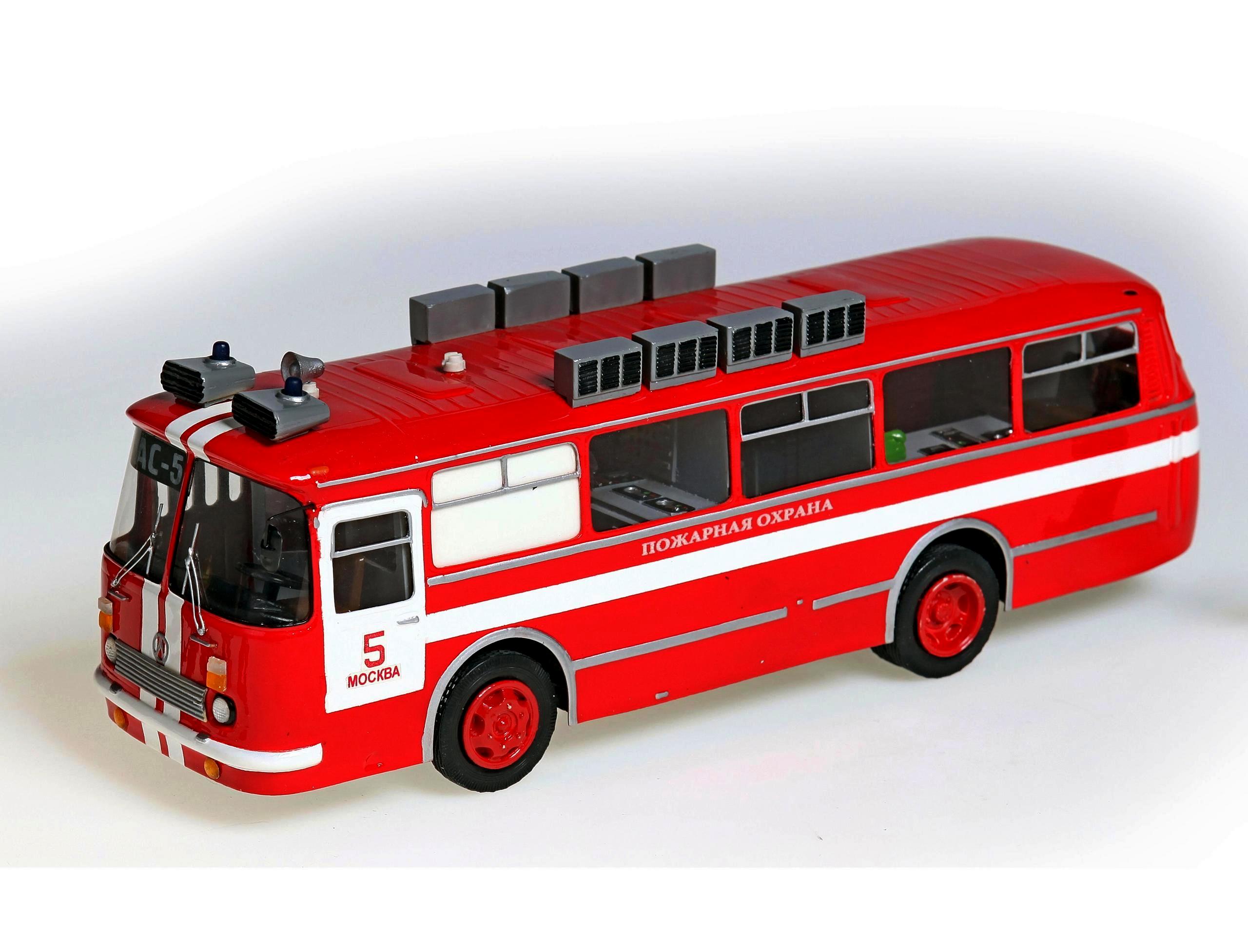 АС-5 пожарный автомобиль связи и штаба пожаротушения на базе автобуса общего назначения ЛАЗ-695Н "Львов" 4х2, три отсека, дверей 2 плюс 1 для водителя, полный вес до 11.63 тонн, максимальная скорость до 86 км/час.