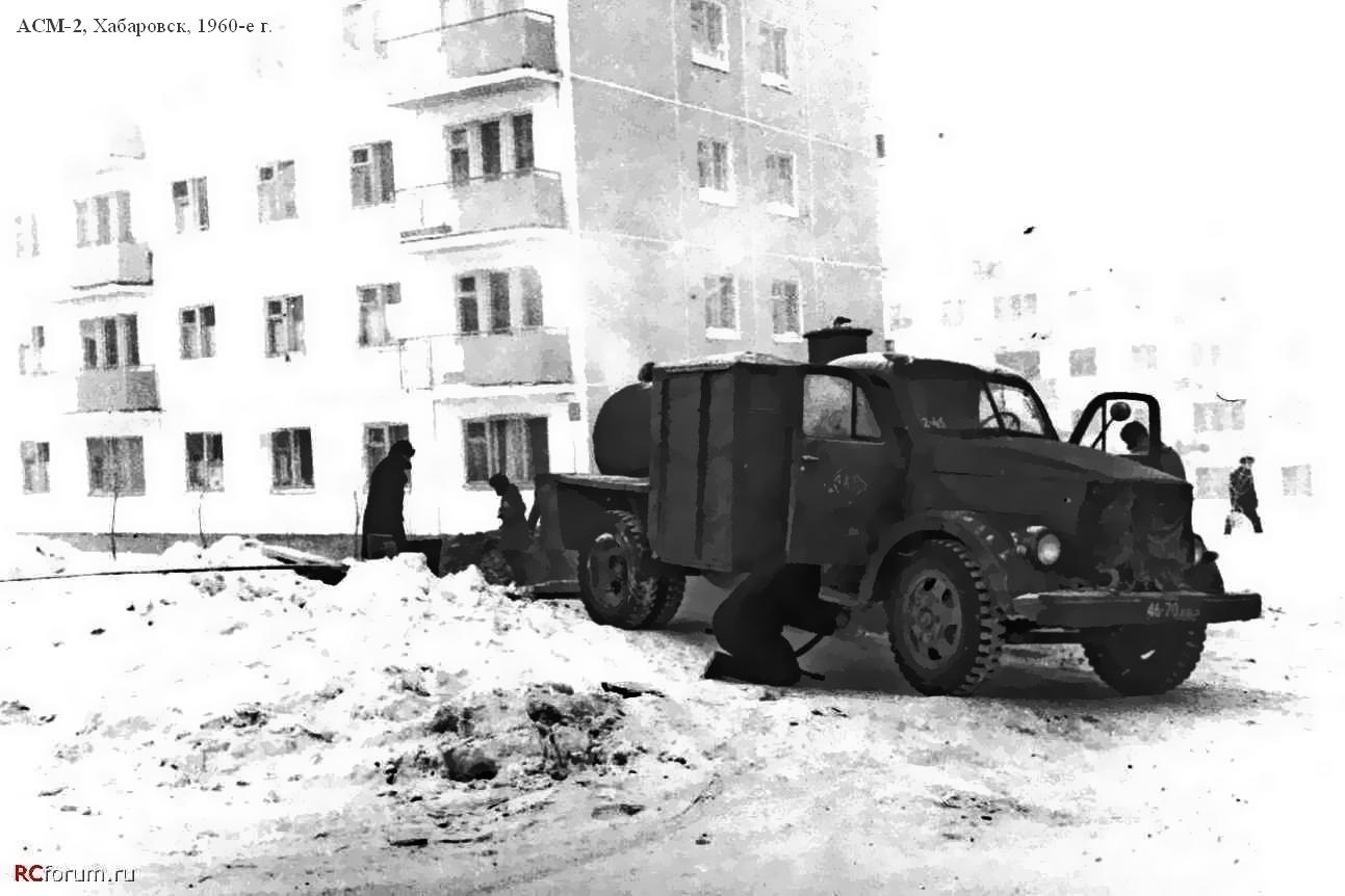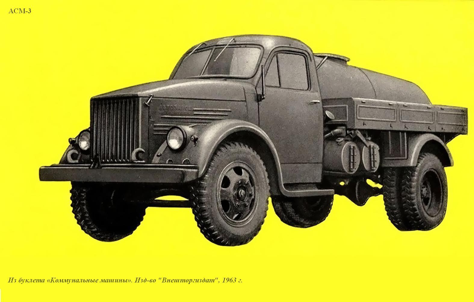 Ассенизационные машины АСМ-3 выпускались с 1958 по 1970 г. и были самыми распространенными в СССР. Кроме того, их поставляли на экспорт. Из-за своей простоты и надежности они пользовались хорошим спросом в странах соцлагеря и в Латинской Америке.