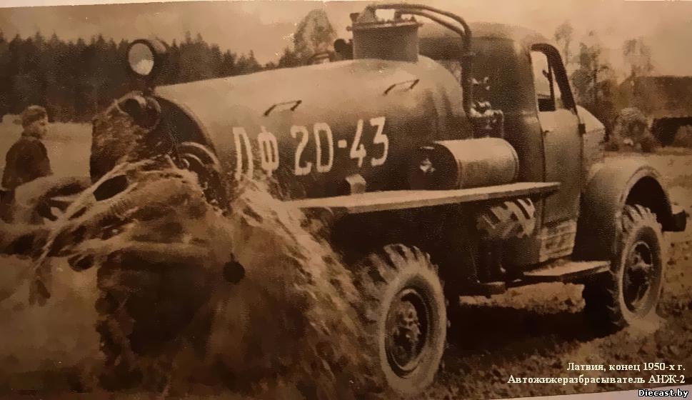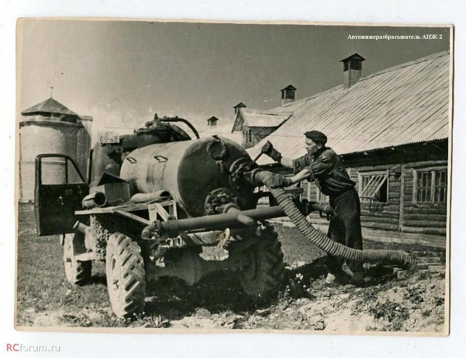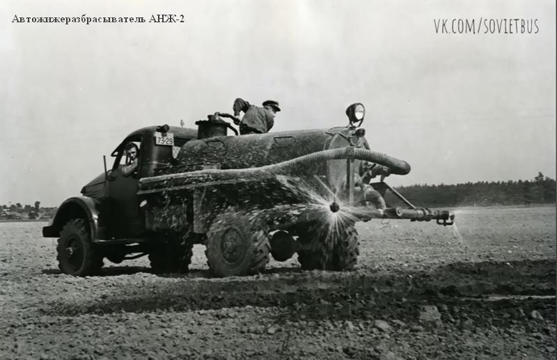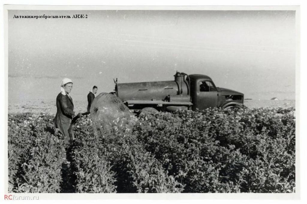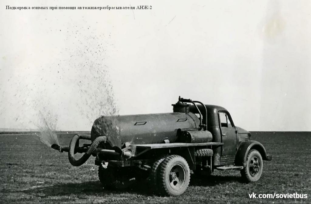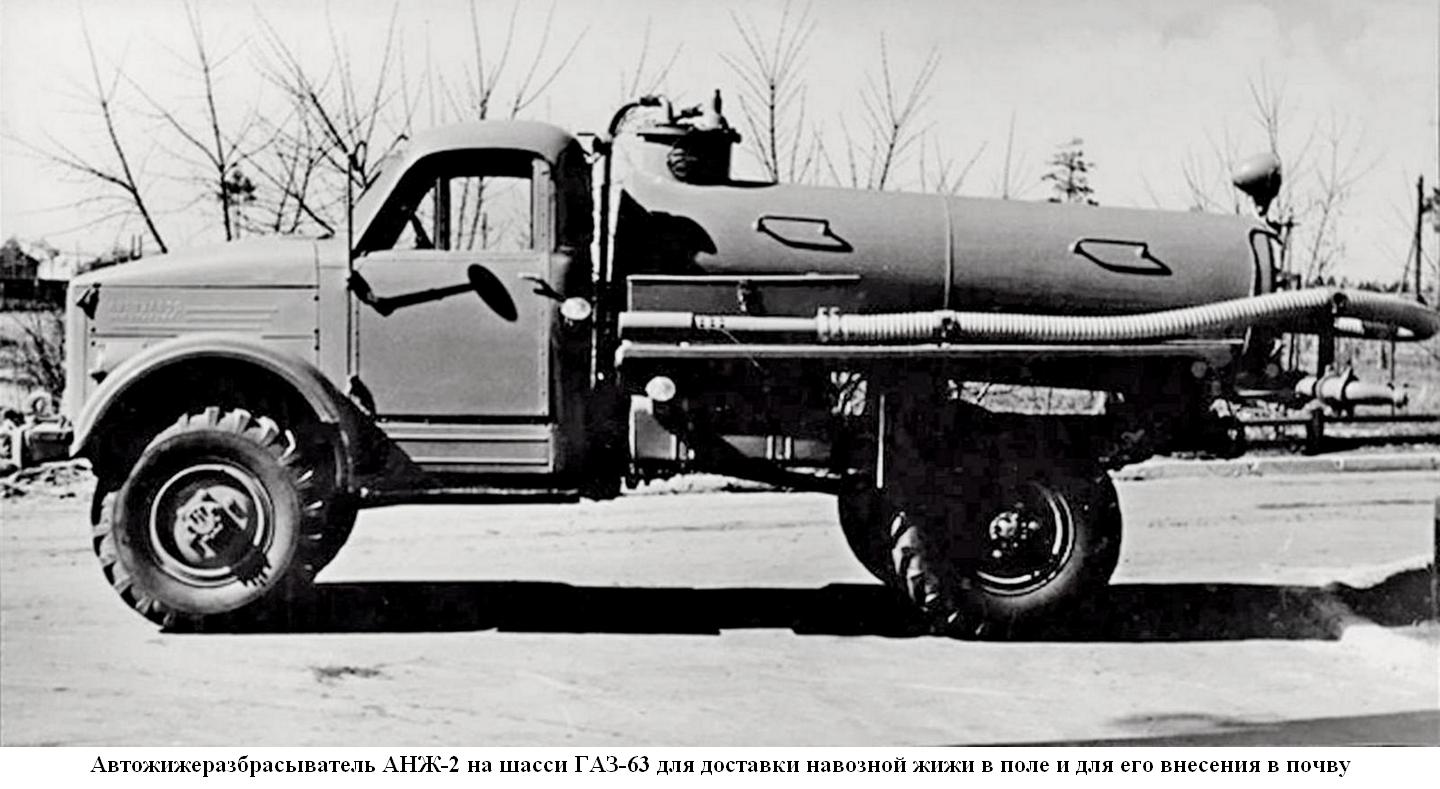 - АНЖ-2, автожижеразбрасыватель на шасси ГАЗ-63 и ГАЗ-51А для доставки навозной жижи и жидкого навоза в поле и для внесения их в почву. В 1970-х г. был заменен на разбрасыватель жидких удобрений РЖУ-3.6 шасси ГАЗ-53А.