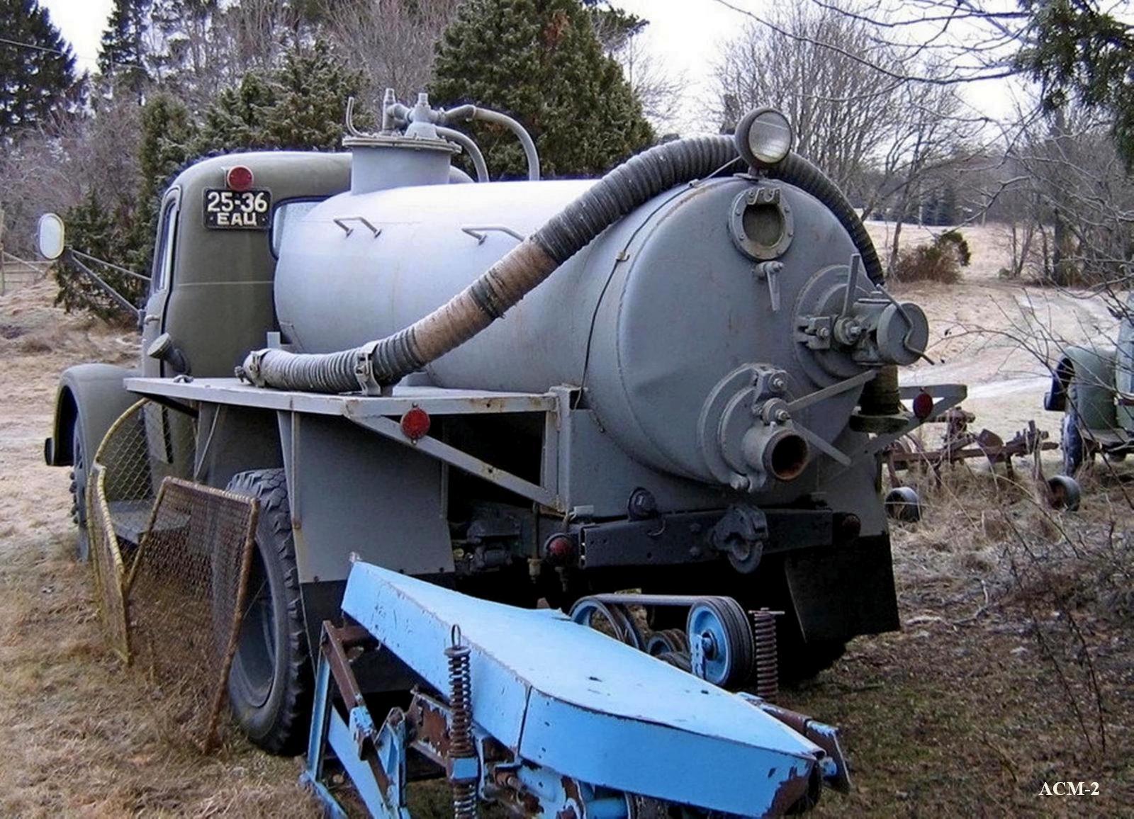 На базе АСМ-3 Новочеркасским заводом «Нефтемаш» строились автоцистерны АЦ-3-63 для транспортировки глинистого раствора, образующегося при бурении нефтяных скважин. Какая разница? Разжиженные фекалии или разжиженная глина - физические свойства одинаковы.