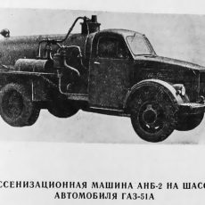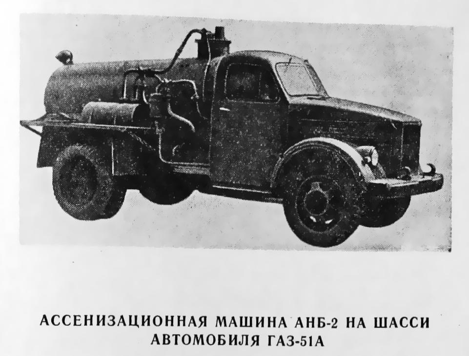 - АНБ-2, ассенизационная насосная машина на шасси ГАЗ-51А с ротационным вакуум-насосом для вывоза густых нечистот;