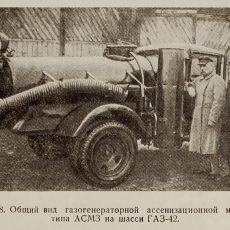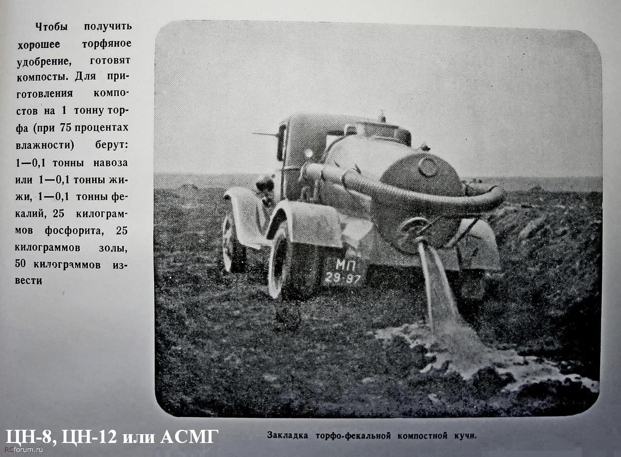 АСМГ ассенизационный автомобиль с цистерной емкостью 1.25 м3 на шасси ГАЗ-АА/ММ 4х2, компрессор РН-6, мест: 2, полный вес до 3.3 тонн, максимальная скорость 70 км/час.