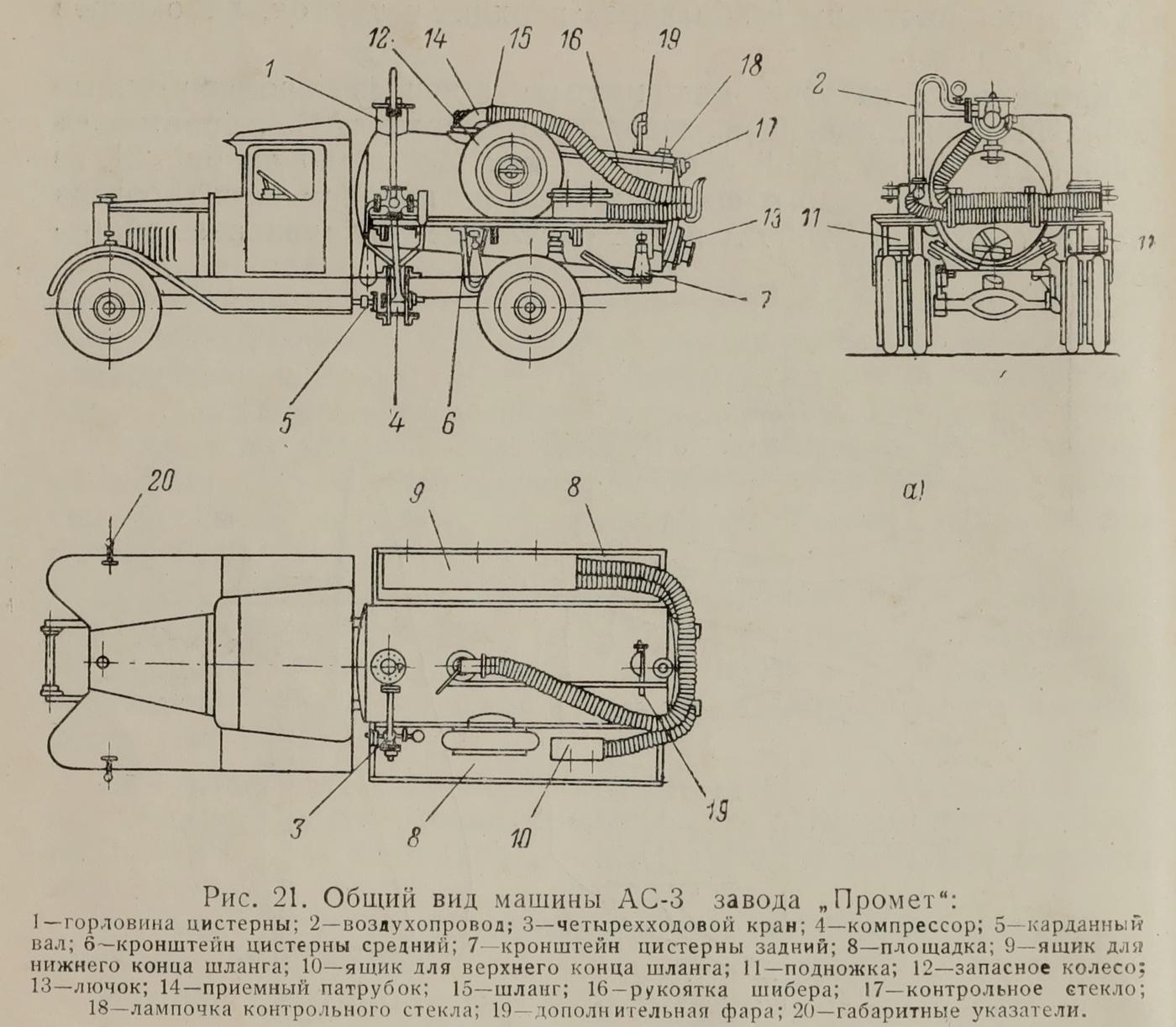 За последнее время большое распространение получили ассенизационные автомобили, предназначенные для удаления жидких нечистот и транспортировки их к месту слива. Эти автомобили, разработанные проектным бюро Министерства коммунального хозяйства РСФСР, имеют большое значение в деле благоустройства городов и прилегающих к ним населенных пунктов. В качестве шасси для ассенизационных цистерн применяются как старые, так и новые грузовые автомобили заводов! ГАЗ и ЗиС.