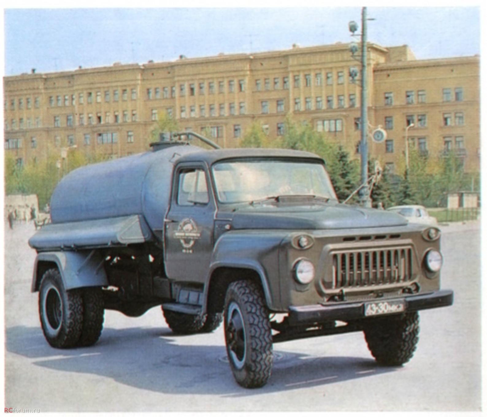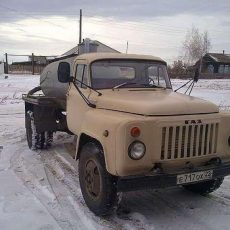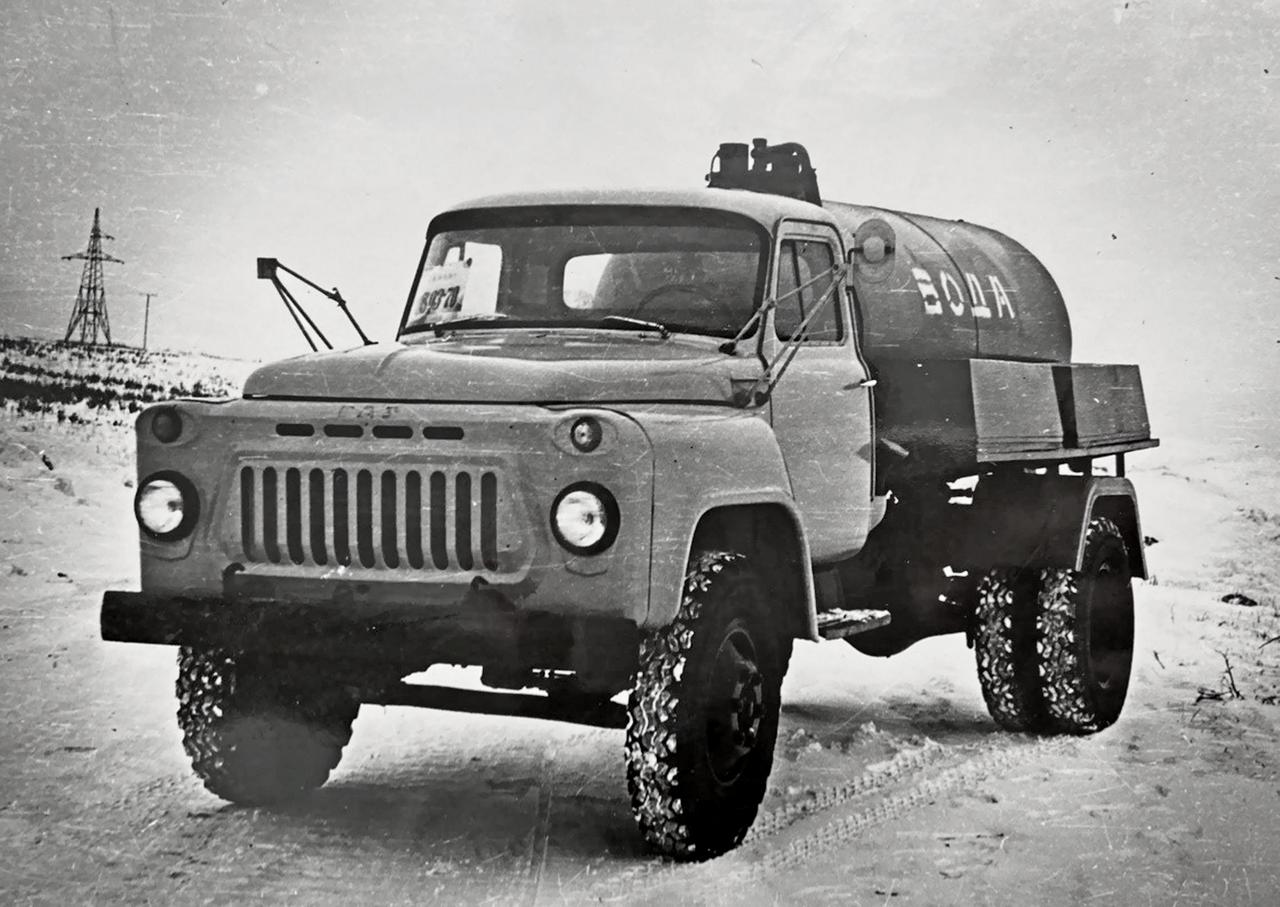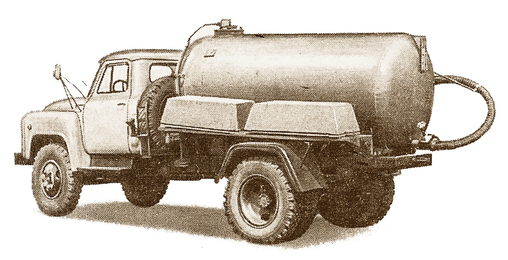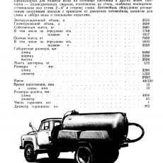 АВВ-3.6 Автомобиль Вакуумный Водяной емкостью 3.55 м³ для доставки воды на пастбища на шасси ГАЗ-53-14 4х2, насос РВН 40/350, мест: 2, порожний вес 3.695 тонн, полный вес 7.4 тонн, максимальная скорость 90 км/час.