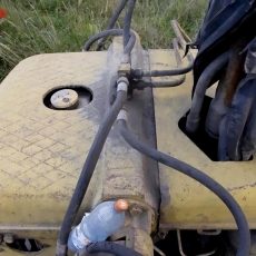 Масляный бак — штампованный. Масло, поступающее в него через горловину с сетчатым фильтром, проходит сквозь гидроциклон, где очищается от примесей. Ведущий вал шестеренного повышающего редуктора соединен с постоянно вращающимся карданным валом трактора при помощи муфты. На редукторе установлены три шестеренных насоса НШ-46. Поток жидкости в гидравлической системе распределяется и регулируется при помощи золотникового 4-позиционного распределителя.