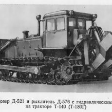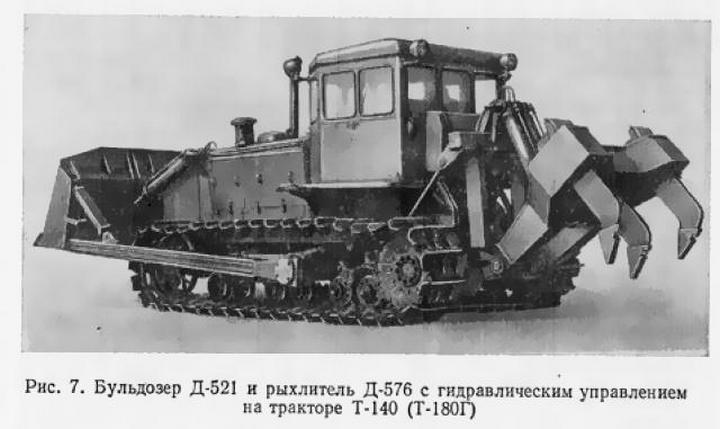 Д-521, он же ДЗ-24 гусеничный гидравлический бульдозер с прямым неповоротным отвалом и 3-зубым рыхлителем Д-576Б на базе трактора Т-180Г, глубина рыхления до 0.7 м,  рабочий вес 19.5 тонн, максимальная скорость до 12 км/час.