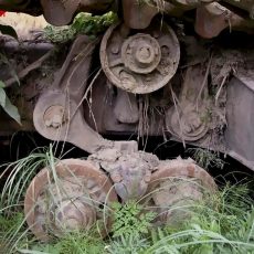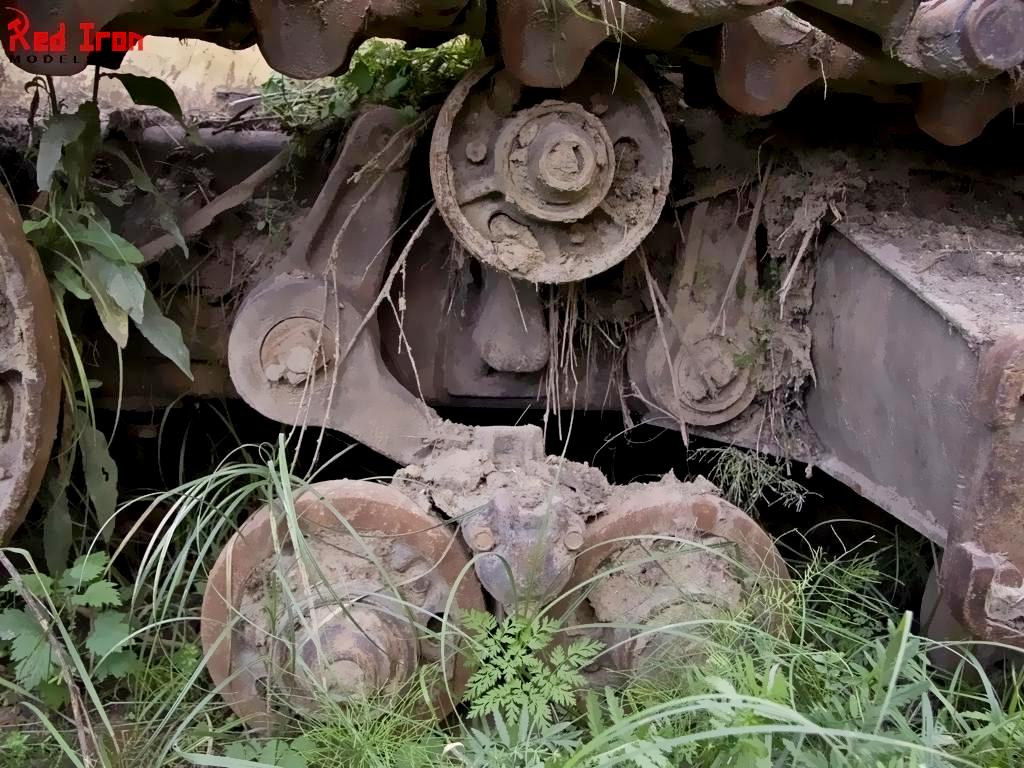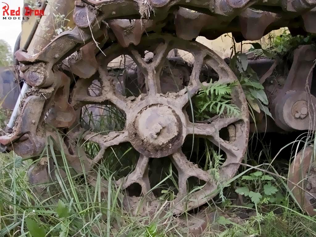 Опорные катки, поддерживающие ролики и натяжные колёса гусениц выполнены с одинарным ободом сферической формы. Ведущее колесо имеет цевочное зацепление с гусеницей. Последняя выполнена крупнозвенчатой, с литыми траками из легированной стали.