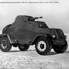 Агрегатная база будущего бронеавтомобиля, покрытая серийными кабинами полуторок и обычными бортовыми платформами, вышла на испытания в 1939 году. В семействе изначально предусматривались основные модификации: шасси с удлиненной базой ГАЗ-63 предназначалось для грузовика, а унифицированное с короткой базой ГАЗ-62 — для броневика. Вслед за ходовыми образцами шасси в начале 1941 года появились и два опытных полноприводных броневика ЛБ-62 с двигателем ГАЗ-11. Главное автобронетанковое управление Красной армии занялось испытаниями, но времени для налаживания производства уже не было — началась война.
