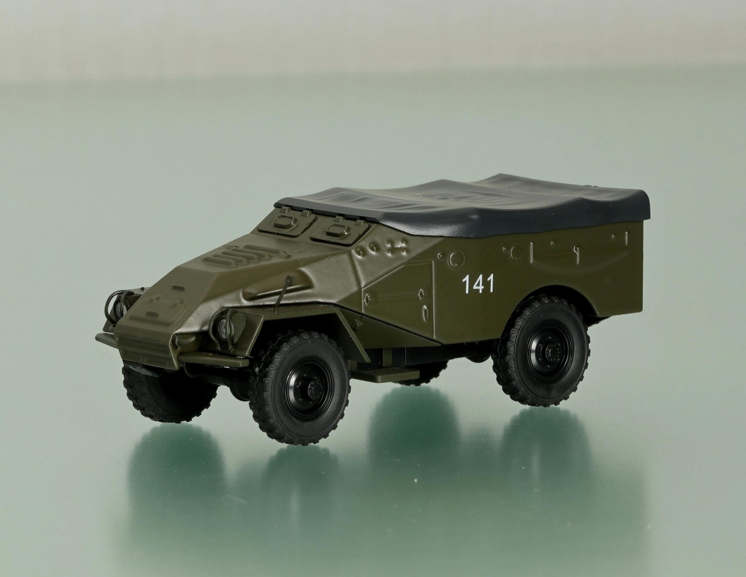 Именно несущий бронекорпус стал первым принципиальным отличием «Объекта 141» от американского аналога. Отказ от рамы позволил снизить боевую массу новой машины до 5,3 т. Иными словами, вес нового броневика в базовом исполнении оказался практически таким же, как полная масса грузовика ГАЗ-63. Броневик, рассчитанный на десять человек (отделение из восьми мотострелков, водителя и командира), получился невероятно компактным. Колесную базу по сравнению с ГАЗ-63 уменьшили с 3,3 до 2,7 м. База такой же длины была у «Победы» ГАЗ-М20 и впоследствии у «Волги» ГАЗ-21. По габаритной длине (5 м) и ширине (1,9 м) боевая машина получилась меньше появившегося вскоре легкового ЗиМа. Отказ от рамы позволил не только уменьшить массу на десятки килограммов, но и снизить габаритную высоту. Накрытый тентом броневик был ниже, чем ГАЗ-69 с брезентом — 1,83 м против 2,03.