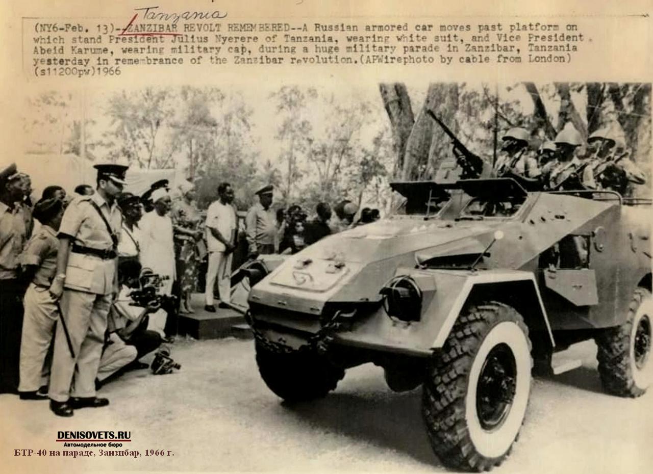 Зато в мирные послевоенные десятилетия Советский Союз в больших объемах поставлял оружие и боевую технику братским странам. География экспорта БТР-40 охватывала государства - участники Варшавского договора, Ближний Восток, Азию и Африку. Горьковские бронетранспортеры воевали во Вьетнаме, использовались в ближневосточном конфликте. Интересно, что в 50-е годы БТР-40 стал одним из немногих отечественных автомобилей, официально поставлявшихся в Израиль. Там отдельные экземпляры машин оставались в строю до начала XXI века, и зачастую на них проходили службу выходцы из республик бывшего СССР.