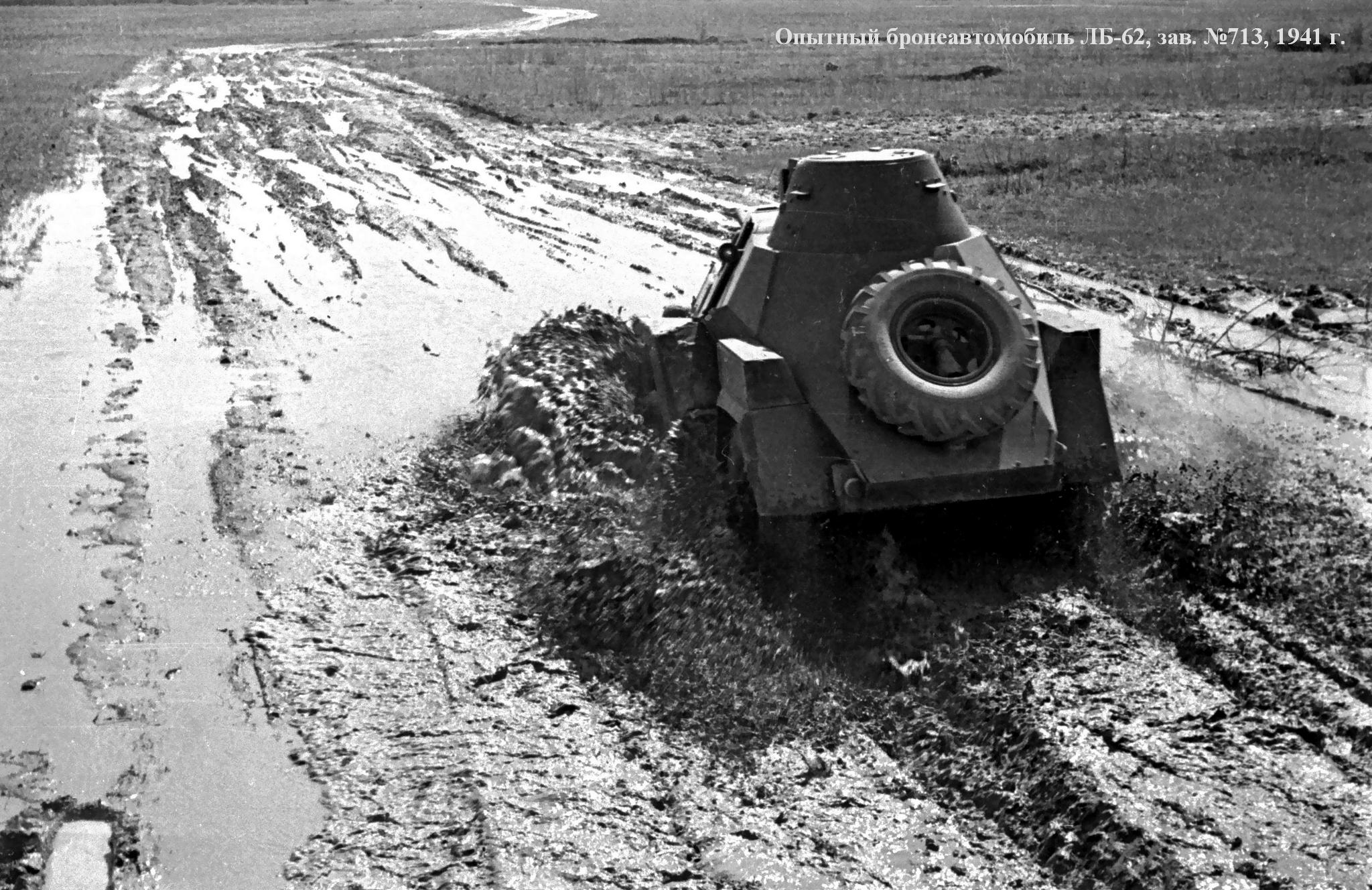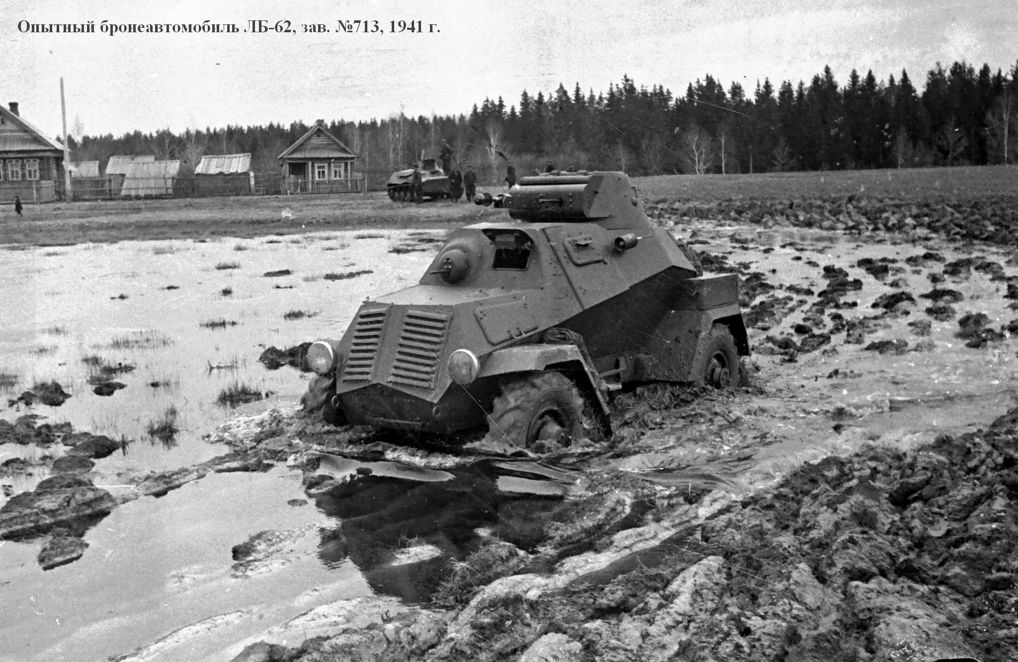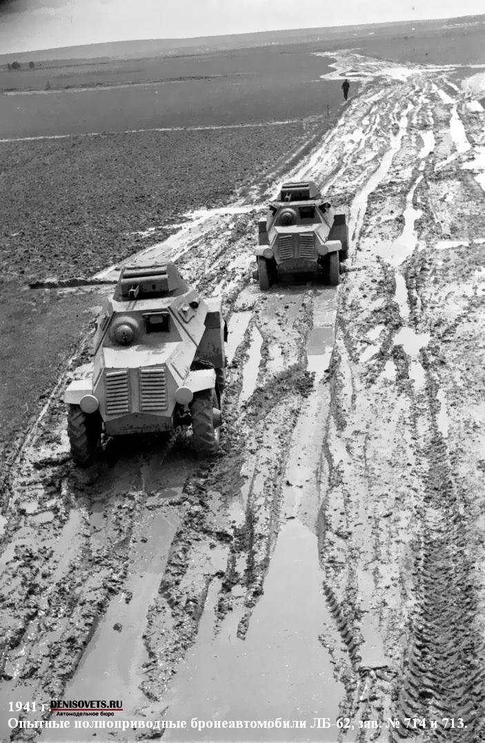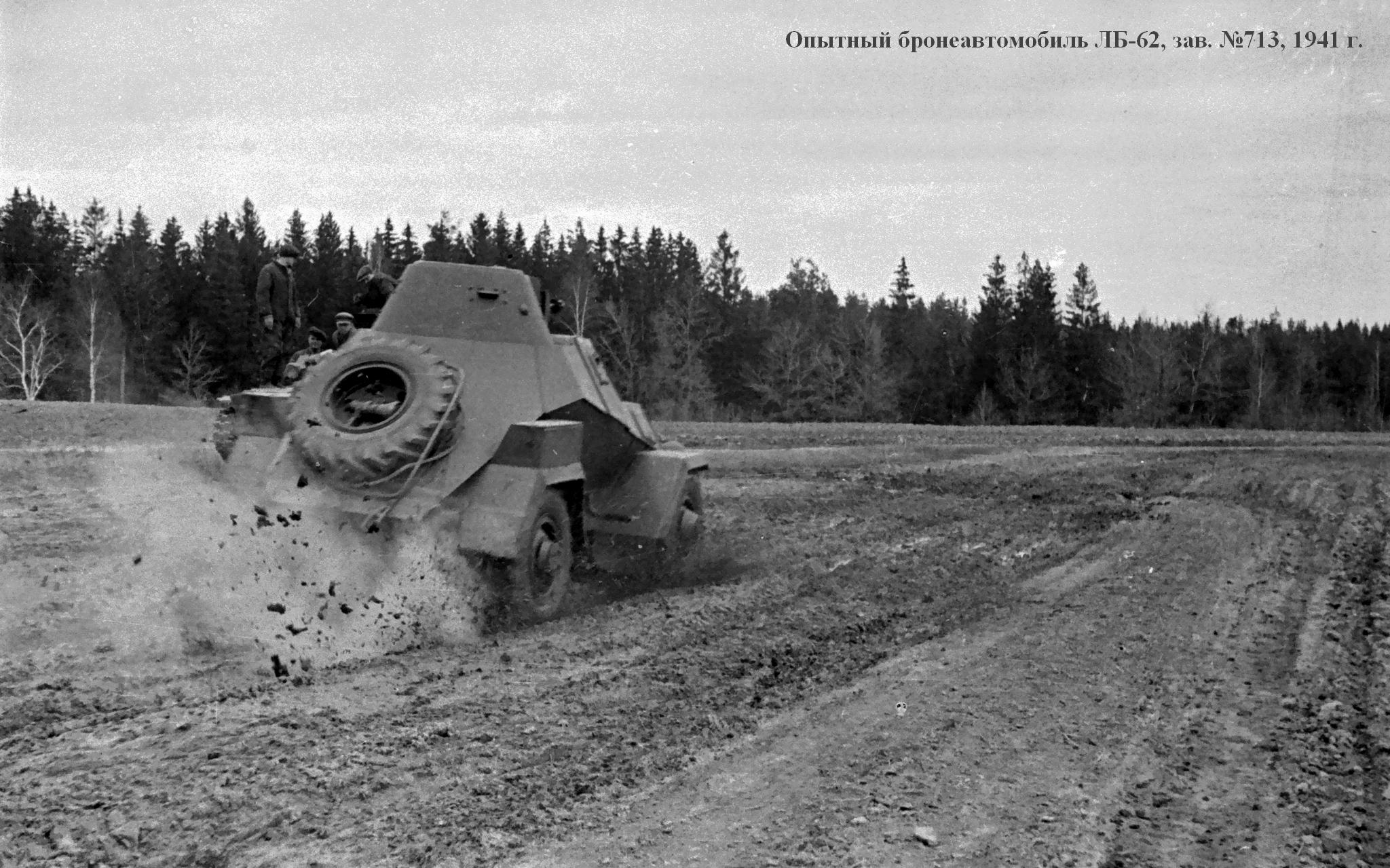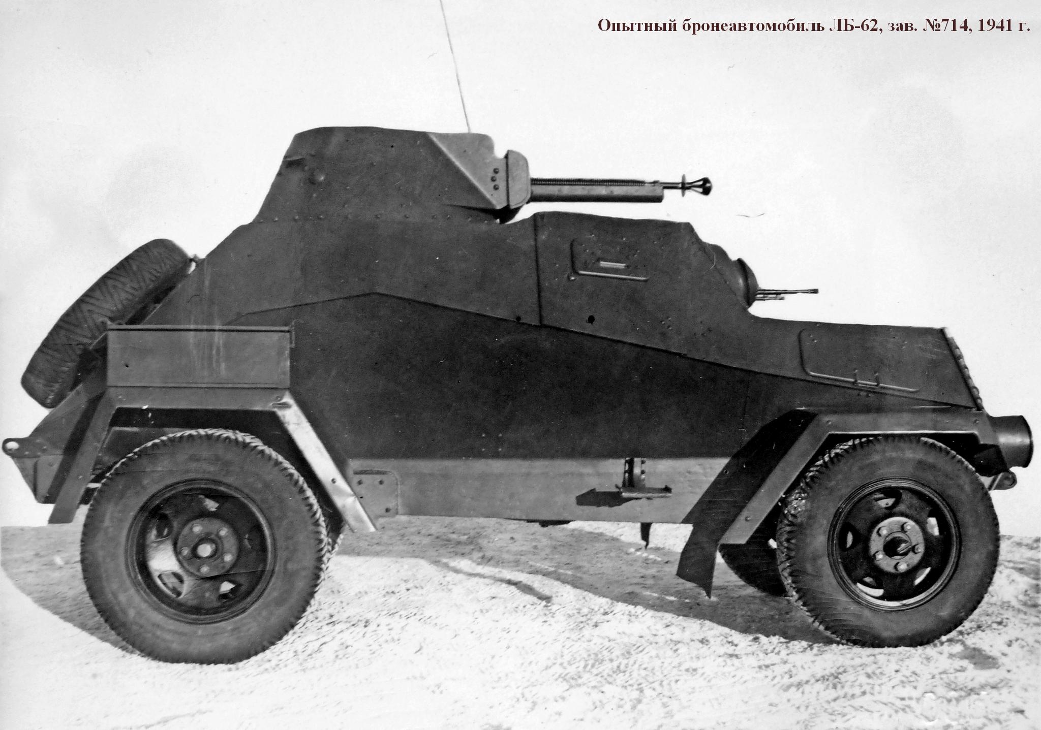 Агрегатная база будущего бронеавтомобиля, покрытая серийными кабинами полуторок и обычными бортовыми платформами, вышла на испытания в 1939 году. В семействе изначально предусматривались основные модификации: шасси с удлиненной базой ГАЗ-63 предназначалось для грузовика, а унифицированное с короткой базой ГАЗ-62 — для броневика. Вслед за ходовыми образцами шасси в начале 1941 года появились и два опытных полноприводных броневика ЛБ-62 с двигателем ГАЗ-11. Главное автобронетанковое управление Красной армии занялось испытаниями, но времени для налаживания производства уже не было — началась война.