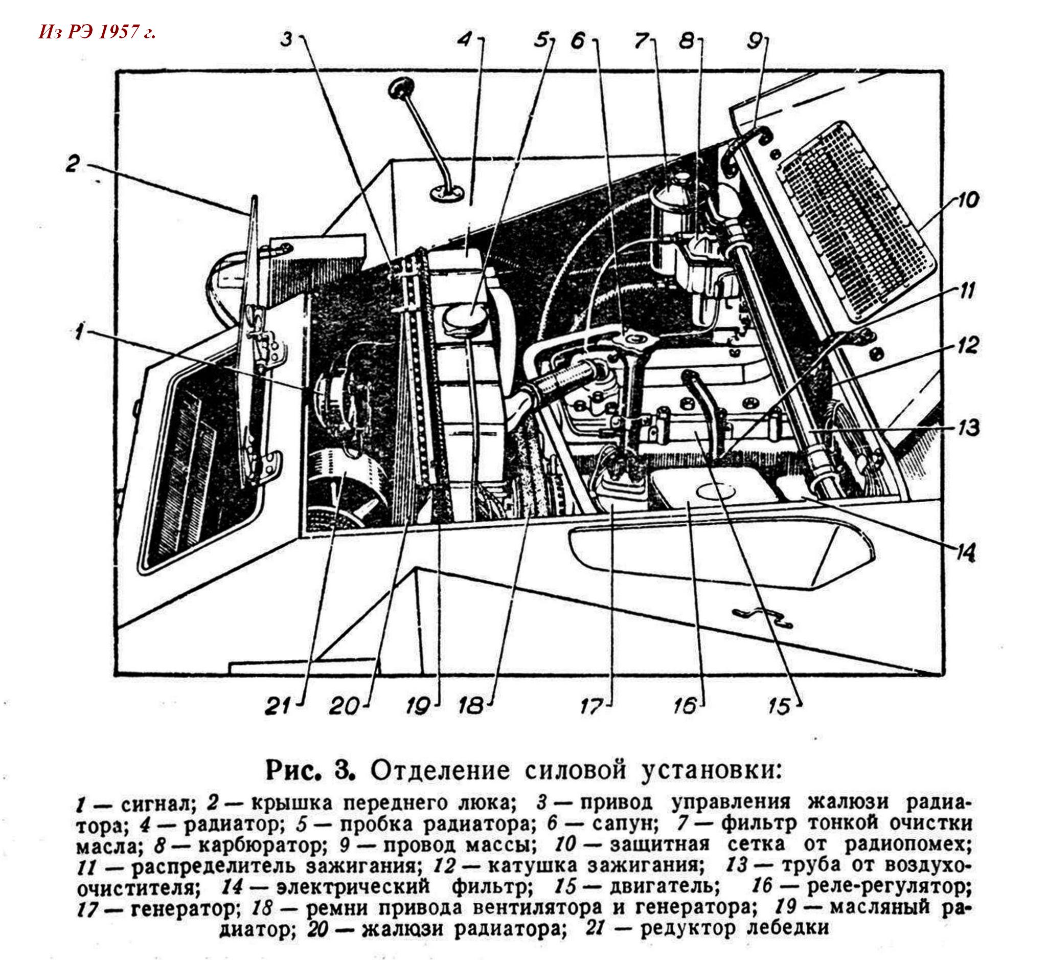 Ящики с боекомплектом укладывались на арки задних колес. Над ними были мощные поворотные кронштейны для пулеметов. За спиной водителя и командира в кузов вваривалась поперечная труба-растяжка, на которую тоже можно было поставить пулемет. Снаружи слева стояли кронштейны для двуручной пилы и лома, справа — для лопаты. Снятые дуги тента укладывались на правое переднее крыло. Аккумулятор находился под сиденьем водителя (как в горьковском грузовике), один бензобак — под сиденьем командира, второй — в заднем свесе. Задний бак тоже хорошо защищали бронелисты. Зато рулевая колонка и редуктор оказались снаружи, в нише левого переднего колеса. Спереди стояла самая мощная броня — 10-15 мм, на бортах потоньше — 8-9 мм. Задняя стенка получилась самой уязвимой — здесь толщина брони составляла всего 7 мм.