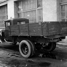ГАЗ-АА или ГАЗ-ММ 4х2 бортовой грузовик грузоподъемностью 1.5 тонн с деревянной платформой с тремя открывающимися бортами, мест: 2, вес без груза 1.65 тонн,