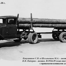 ГАЗ-АА лесовоз, 1934. В 1934-39 годах построено несколько сотен тягачей с прицепами-кониками для транспортировки древесины. Грузоподъёмность автопоезда составляла 2,5 т.