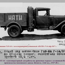 ГАЗ-НАТИ Г-14 - газогенераторный для работы на древесных чурках с установкой НАТИ Г-14 производства московского завода «Комега» (1937-38 г., 1244 экз.);