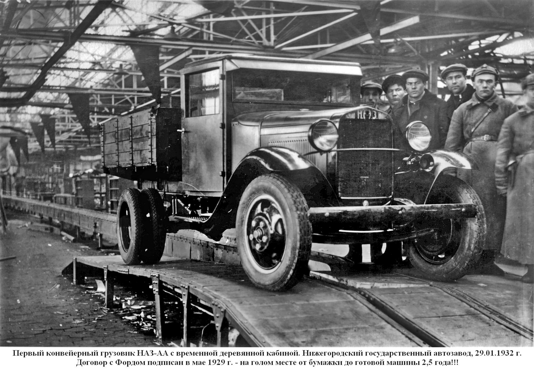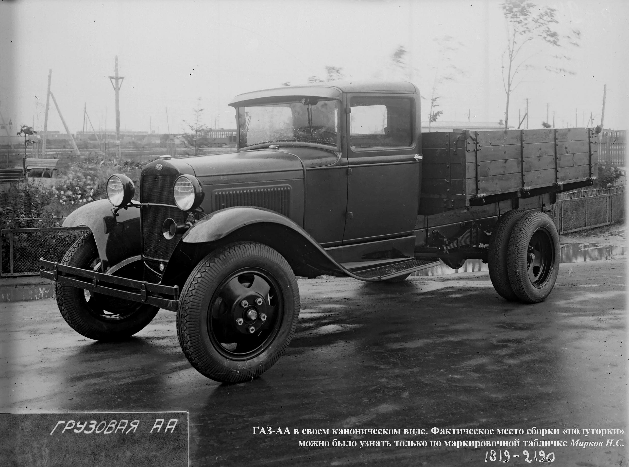 Первый автомобиль, сошедший 29 января 1932 г. с конвейера Нижегородского автомобильного завода, являлся лицензионной копией Ford АА образца 1930 г. Первые восемь месяцев автомобили изготавливали с временной деревянной кабиной, поскольку не успели смонтировать и отладить штампы для стальной кабины. Таких машин изготовили примерно 3800 штук. От заокеанского прототипа советские машины отличались усилением ряда узлов и наличием воздушного фильтра.