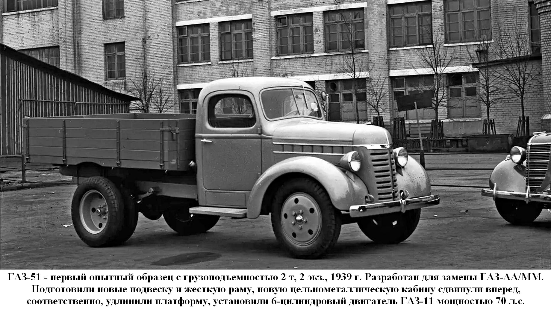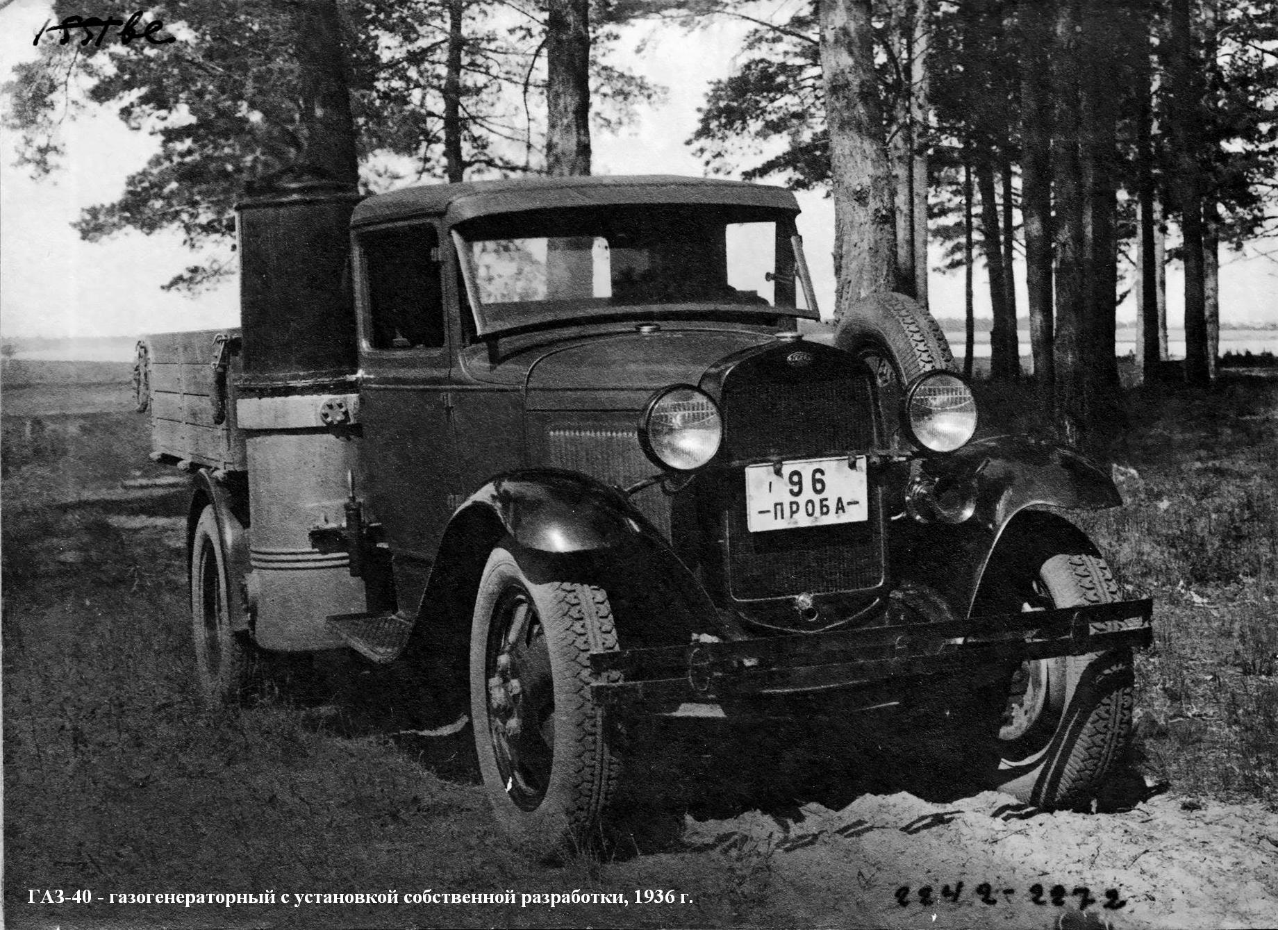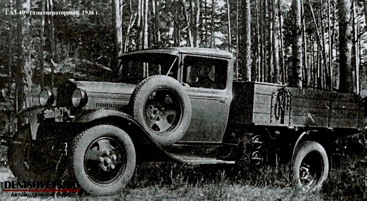 ГАЗ-40 - газогенераторный с установкой собственной разработки (1936 г., 3 опытных образца); ГАЗ-42 - газогенераторный с модернизированной и облегченной установкой типа НАТИ Г-14, мощность -30 л. с., максимальная скорость -50 км/ч, грузоподъемность - 1200 кг, в годы войны выпускали в упрощенном виде (1939-46 г., 31 956 экз.);