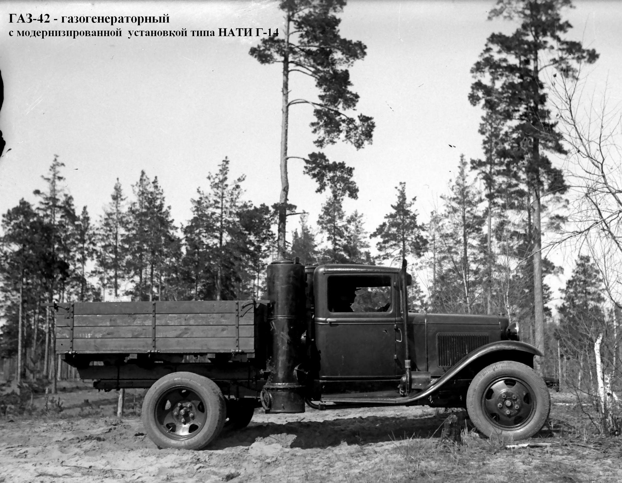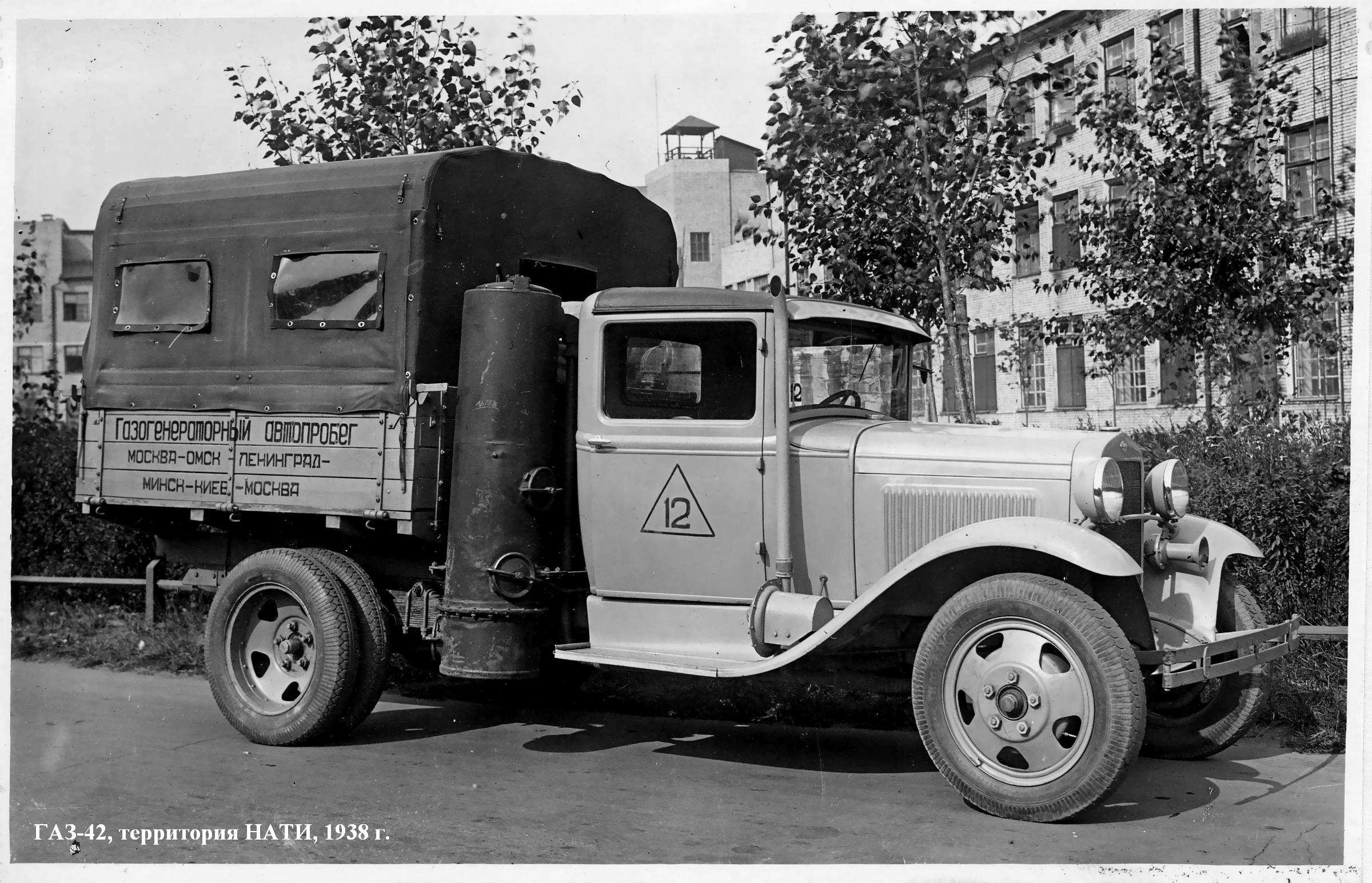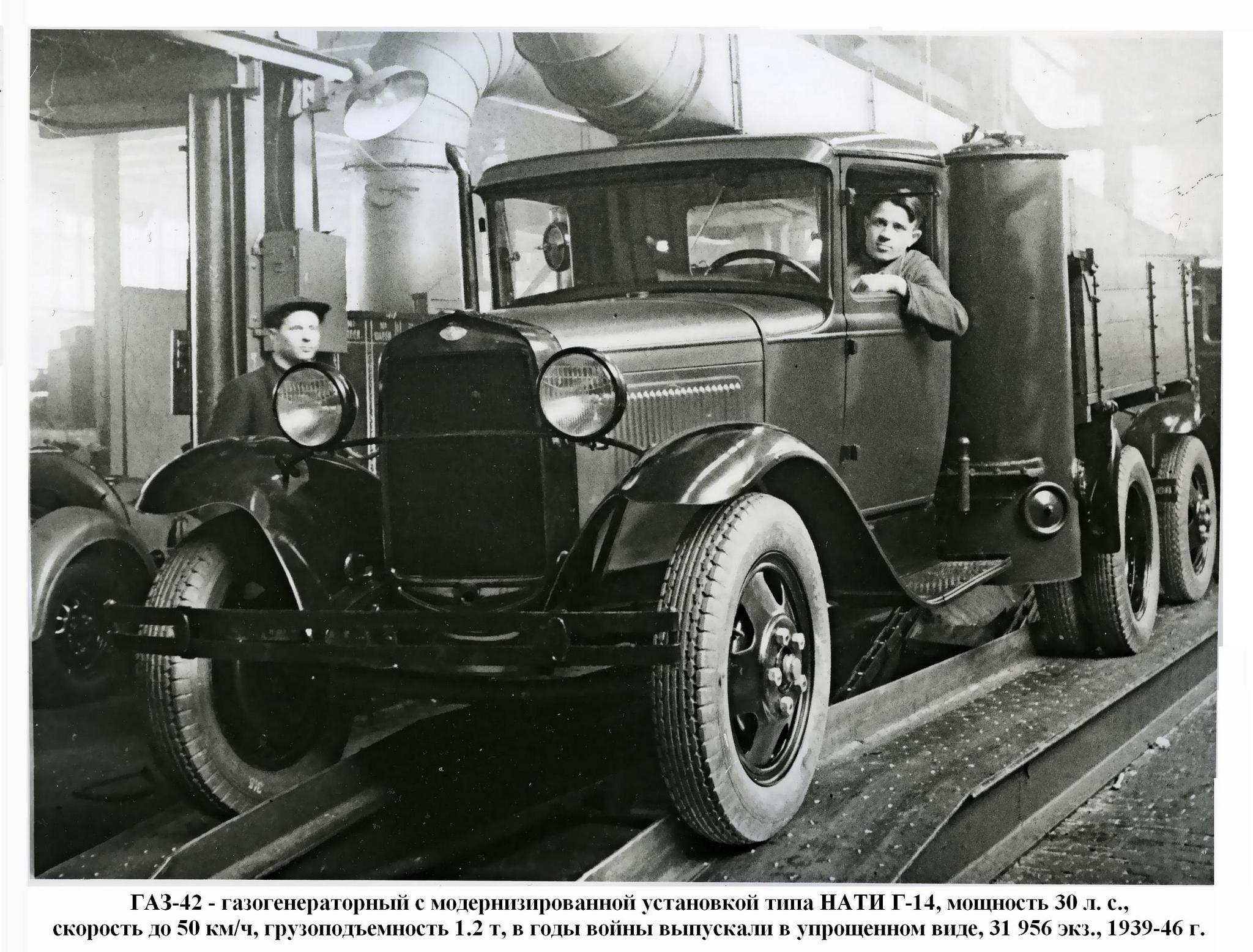 В 1938 г. начали массовое производство газогенераторных грузовиков: сначала модели ГАЗ-НАТИ-Г-14, а потом усовершенствованного варианта ГАЗ-42. В период 1938-43 г. изготовили 33 189 таких машин, а в 1946-м - еще 104 шт.
