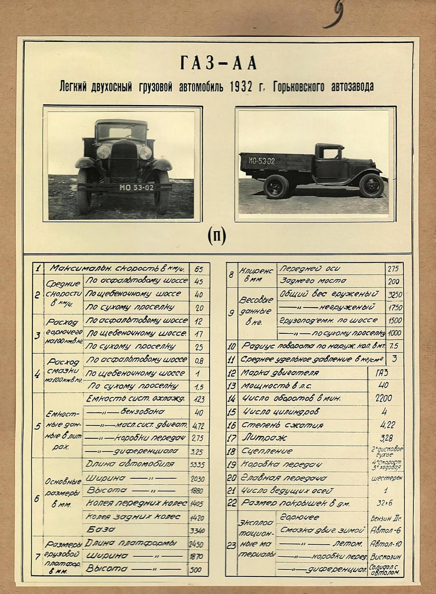 ГАЗ-АА 397463 экземпляров 1932-42 год, ГАЗ-ММ 397821 экземпляр 1938-42/49 год, ГАЗ г. Горький.