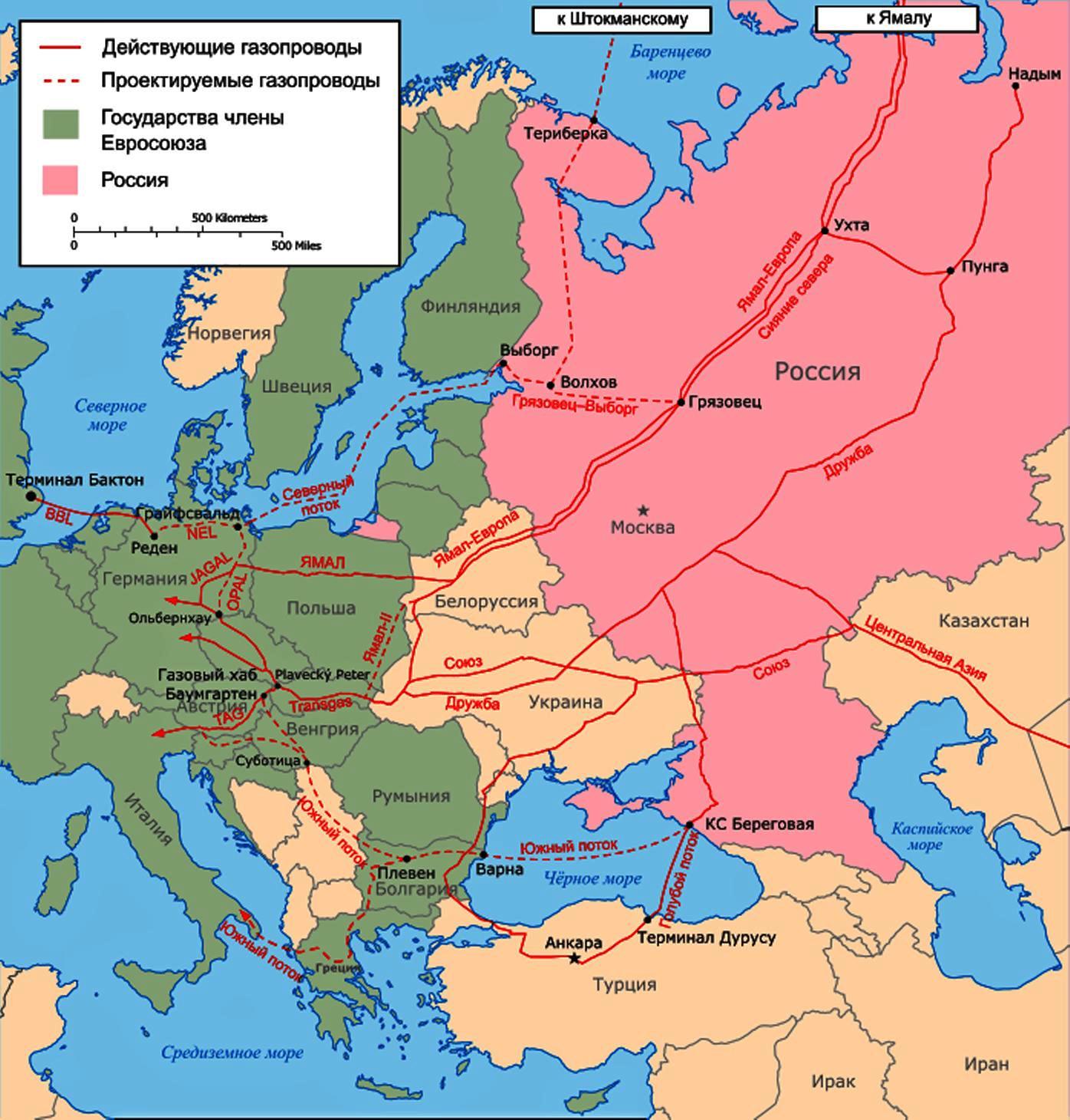 «Союз» (также «Оренбург - Западная граница СССР») - экспортный магистральный газопровод. Диаметр газопровода - 1420 мм, проектное давление - 7,5 МПа (75 атмосфер), пропускная способность - 26 млрд м³ газа в год. Основной источник газа для магистрали - Оренбургское газоконденсатное месторождение.
