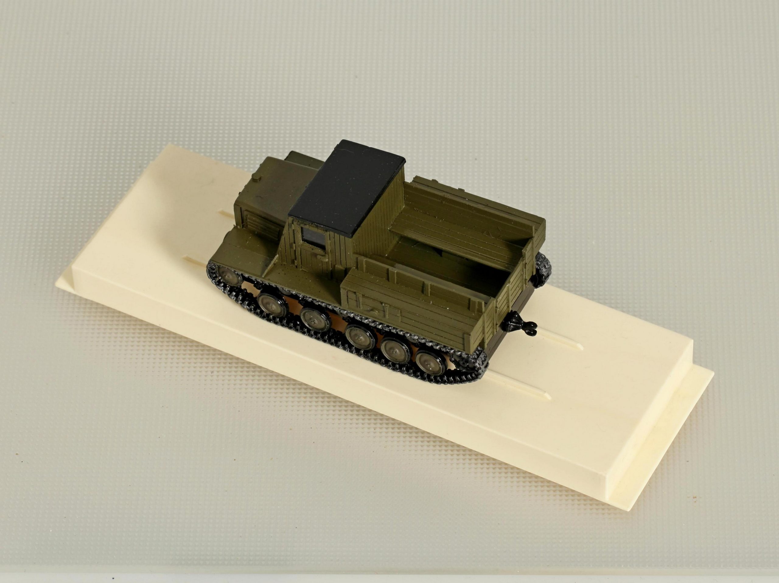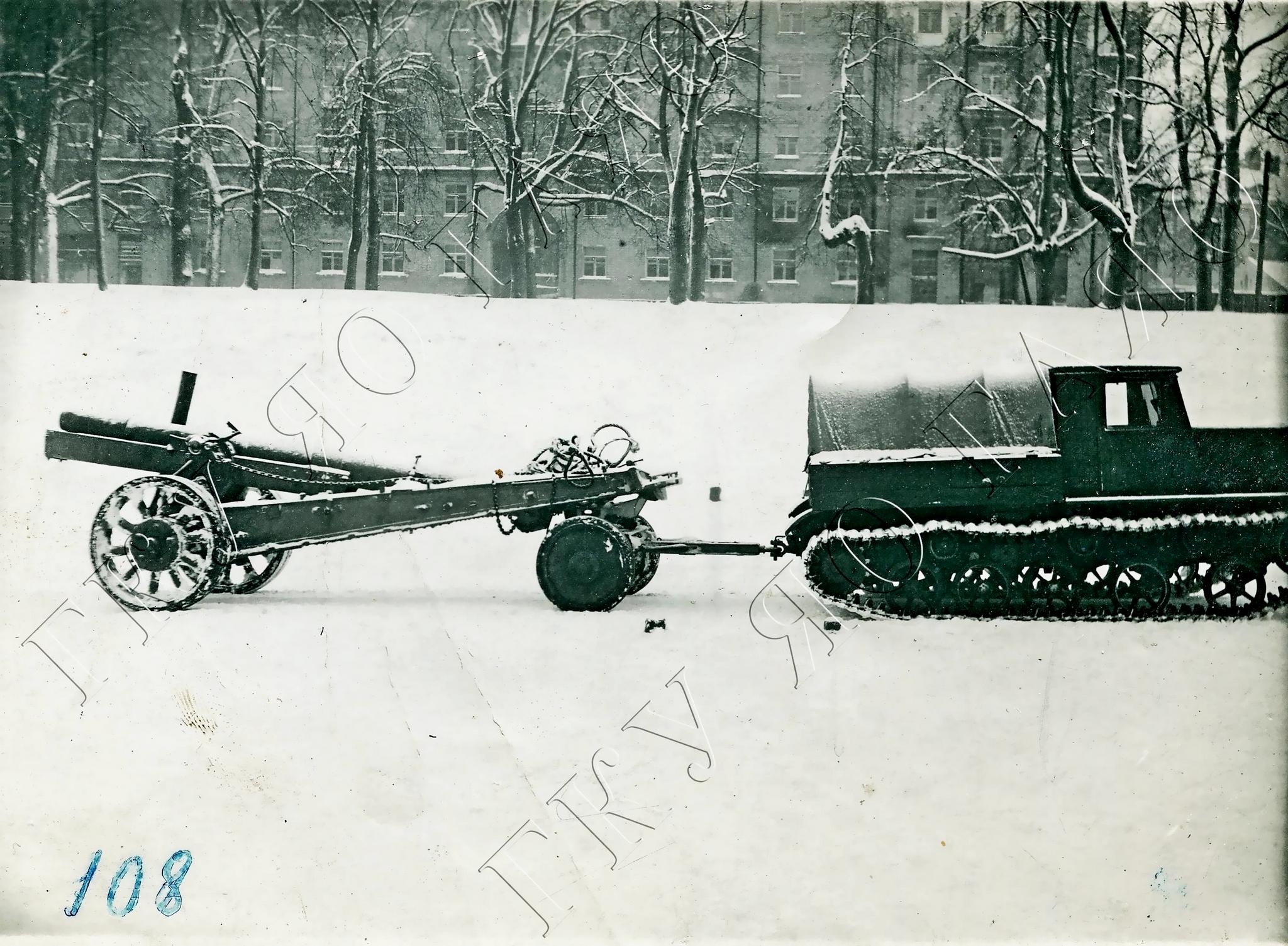 На задней поперечине рамы установили буксирное приспособление, крюк которого, точнее вилка со шкворнем, мог сцепляться с любой артсистемой или прицелом соответствующей массы, а введенная в узел амортизационная пружина смягчала толчки и удары во время движения тягача.