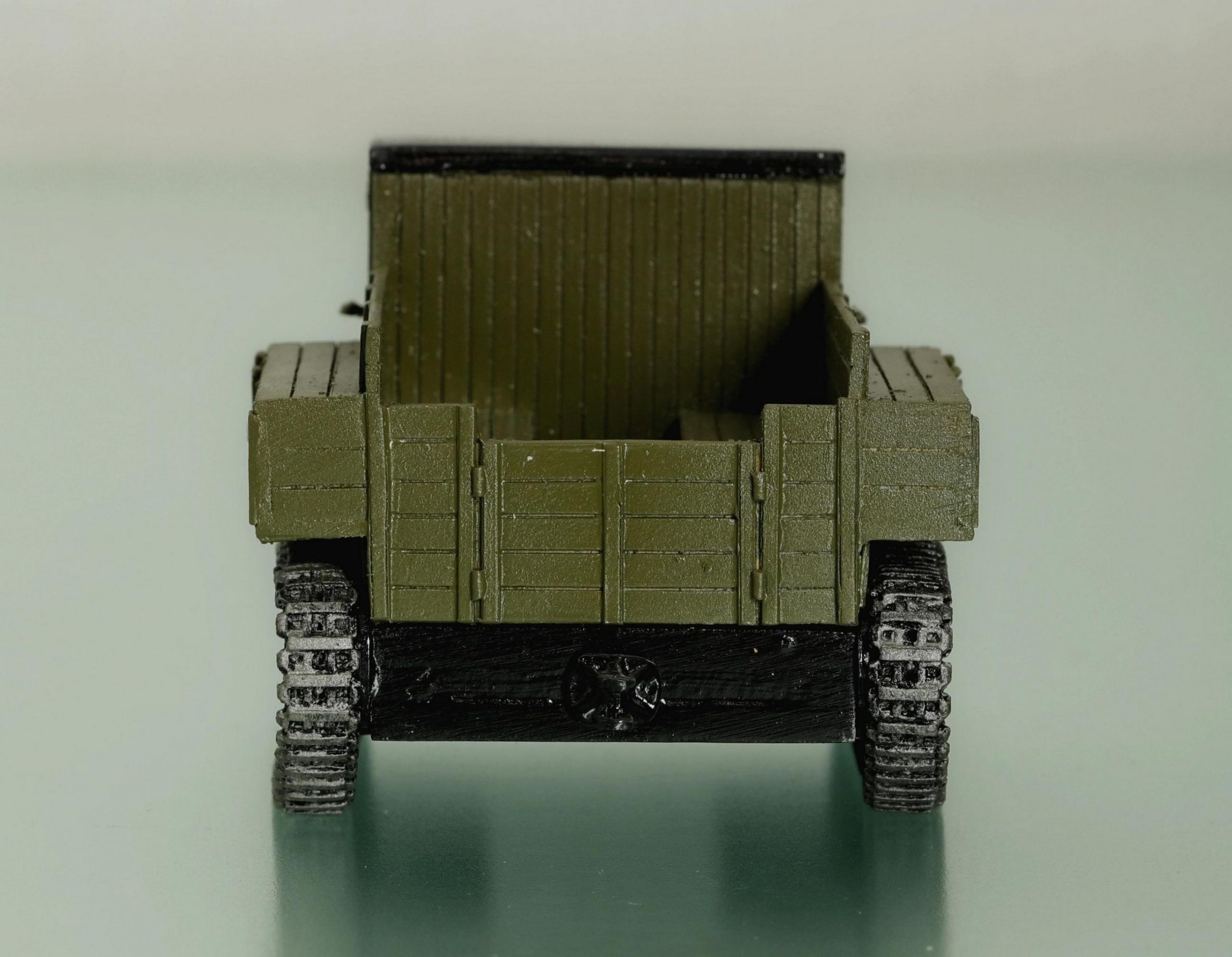 Однако из-за возросшей полной массы нового тягача (более, чем на тонну) клиренс его уменьшился на 53 мм. Заднее буксирное приспособление было поднято на 25 мм для приведения его в соответствие с новыми прицепными системами. Размеры деревянной с металлической окантовкой грузовой платформы пришлось уменьшить - площадь пола теперь составляла 3,37 м2, а объем кузова - 2,02 м3. Ящики для ЗиПа вынесли наружу за пределы платформы, что и заставило значительно уменьшить ее внутреннюю ширину. На количестве перевозимого груза и численности орудийного расчета это не отразилось - те же ящики с боекомплектом и 8 - 10 бойцов.